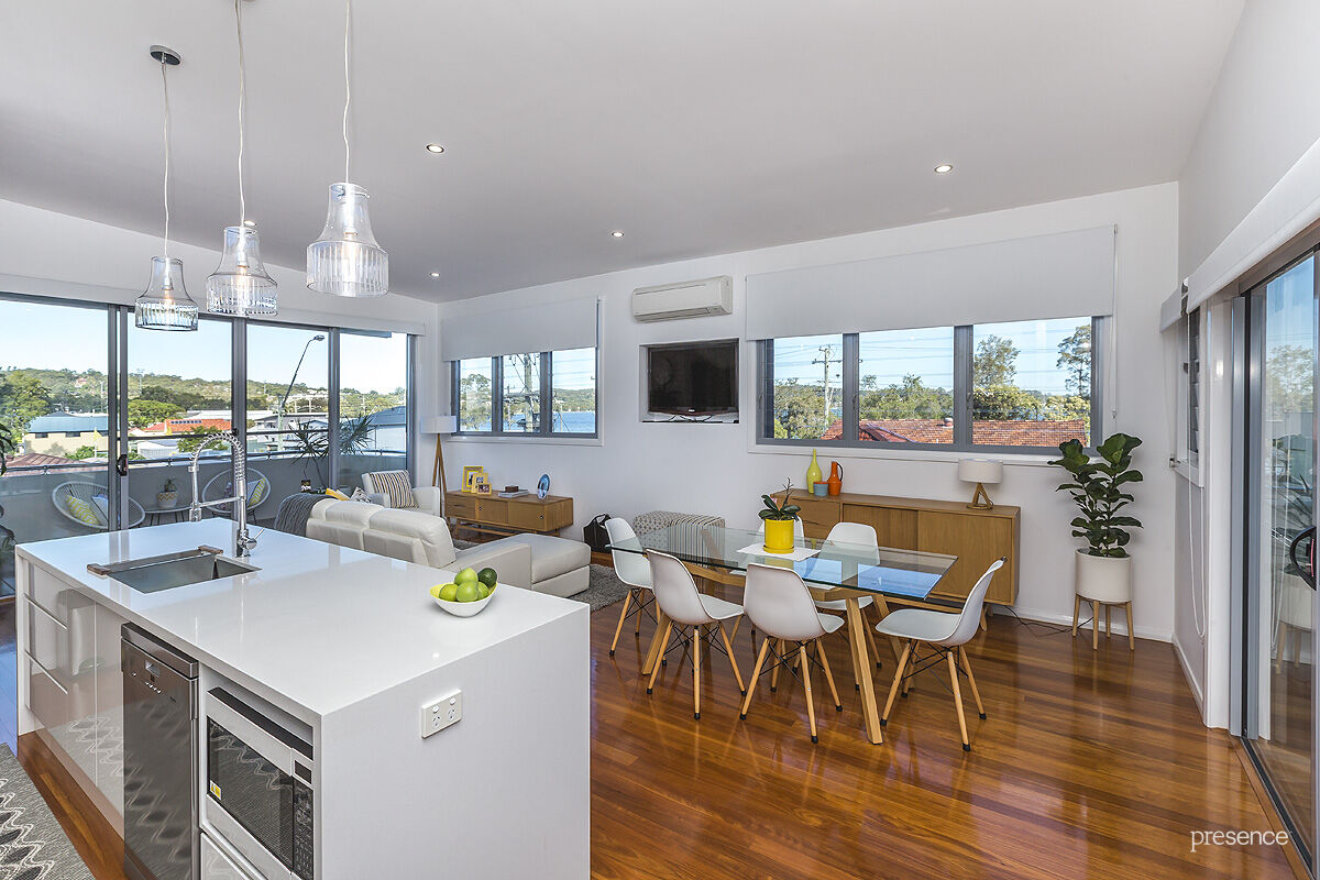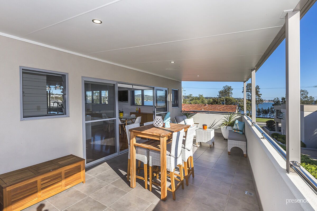 Literally a dash across the road to the shores of beautiful Lake Macquarie, this dual storey home is perfectly positioned to enjoy all the benefits of waterside living with the vibrancy of Warners Bay’s dining and shopping at the doorstep. Sporting the results of a comprehensive c.2014 renovation and extension, it’s been re-imagined to catch optimum light and breezes and showcase dazzling views across lake waters.