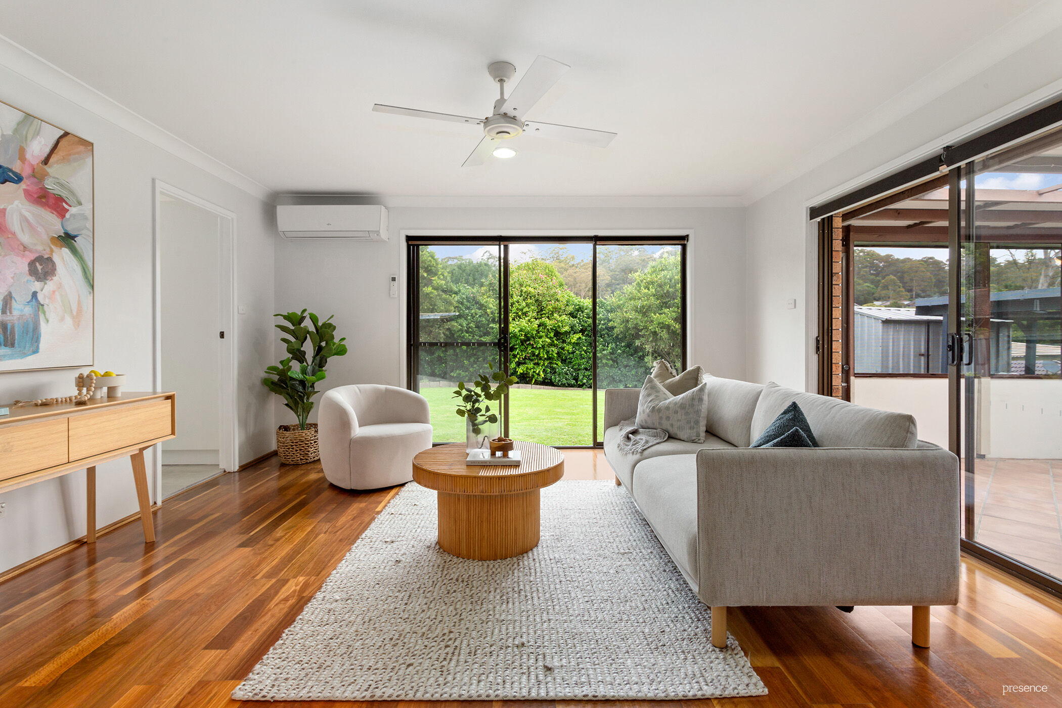 – Light-filled and spacious open-plan living areas, comprising a light-filled lounge room with fan, and family room with AC.