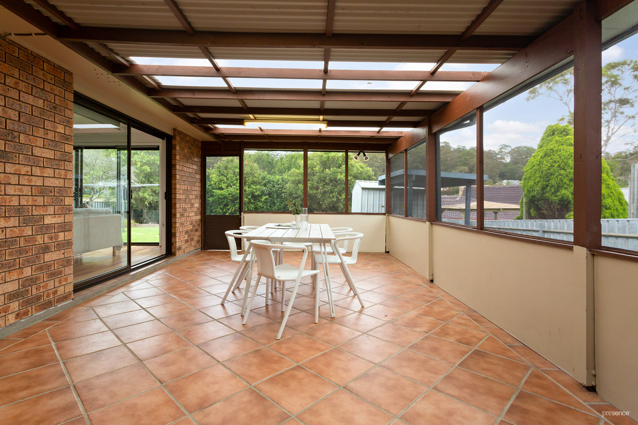 Fringed by established native gardens, this warm and inviting home showcases light and airy living rooms and a free-flowing layout. Opening onto an appealing entry vestibule, the home reveals a renovated interior that you’ll love living in. A vast light-filled lounge with dual aspect windows offers ample room for the whole family to gather. From here you can get your first peek at the fully screened and covered outdoor room, with its expanse of outdoor living and entertaining space. The kids could set up table tennis or a pool table here, or for enthusiastic entertainers, you could utilise this space for an all-weather party room – it’s the perfect haven for year-round relaxing, entertaining, and fun family activities.