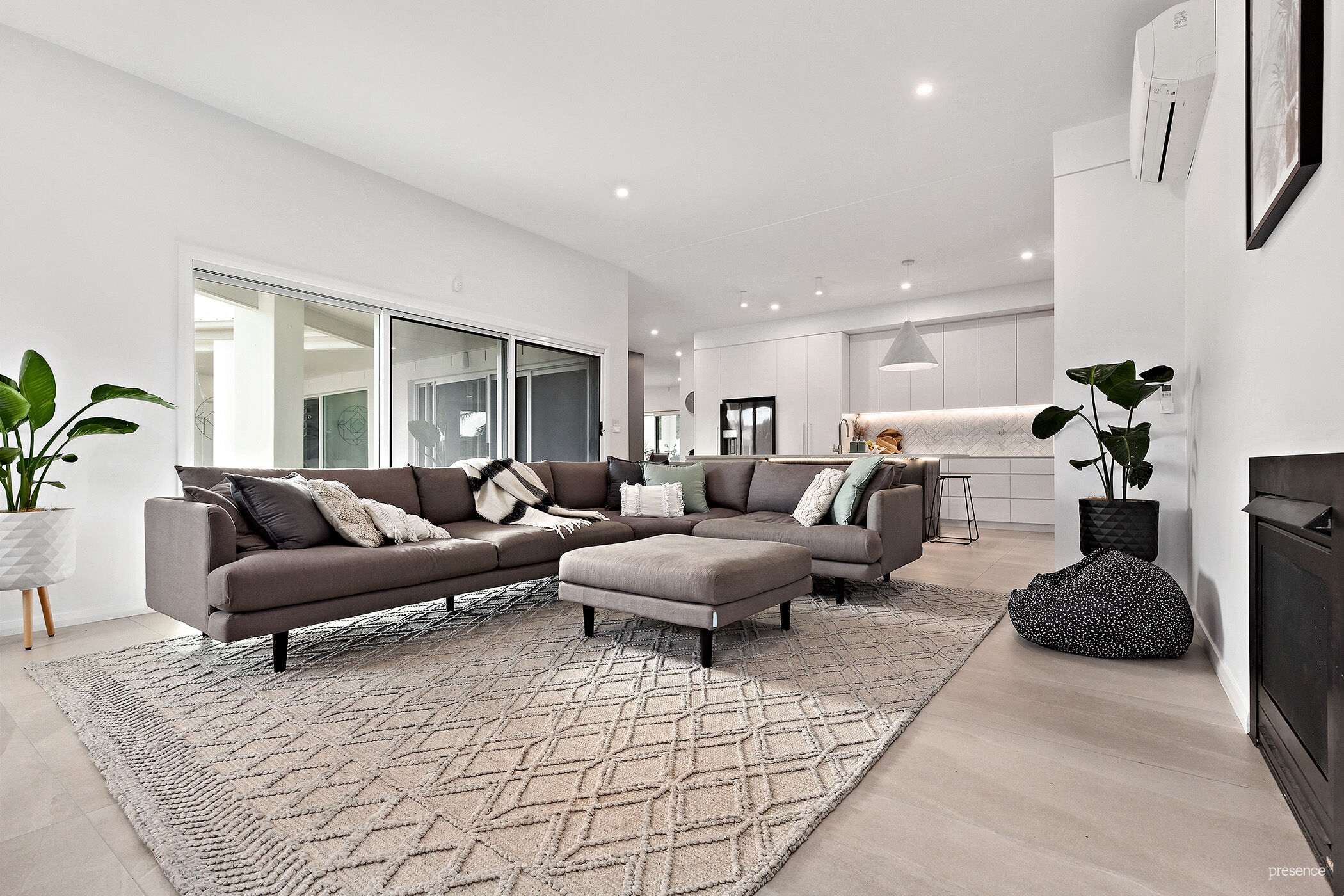 Two separate driveways, one with electric gate, and a double garage allow parking for up to six vehicles including the boat or caravan, while the impeccably presented home has been designed to tread lightly on the environment with an 8.77kw solar power system.
