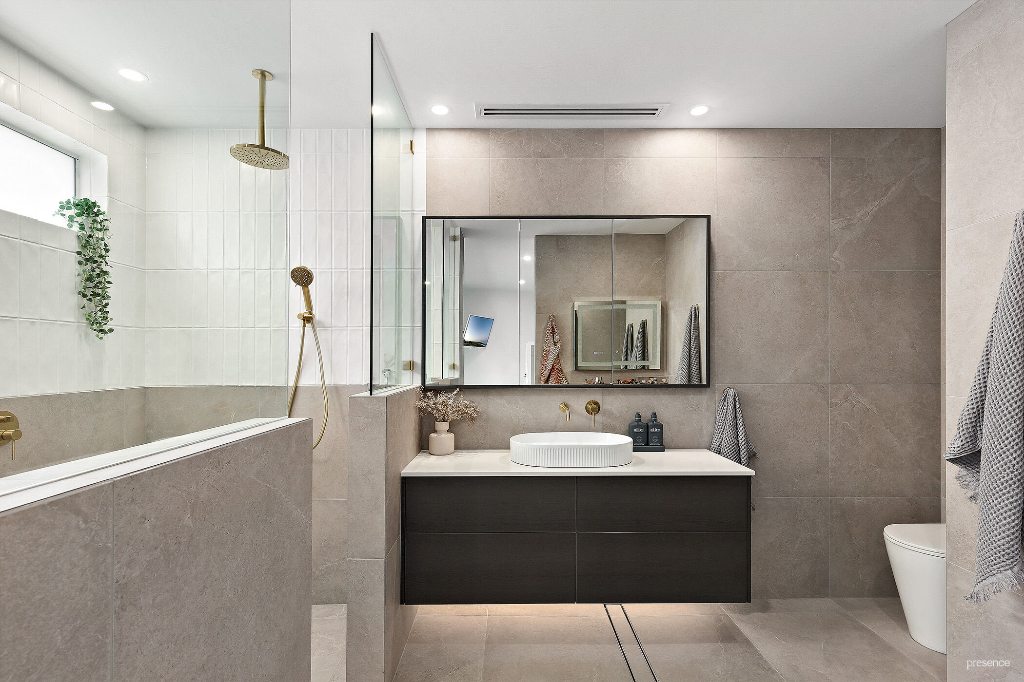 Three renovated bathrooms with Phoenix tapware, luxe master ensuite with double shower and Bluetooth make-up station