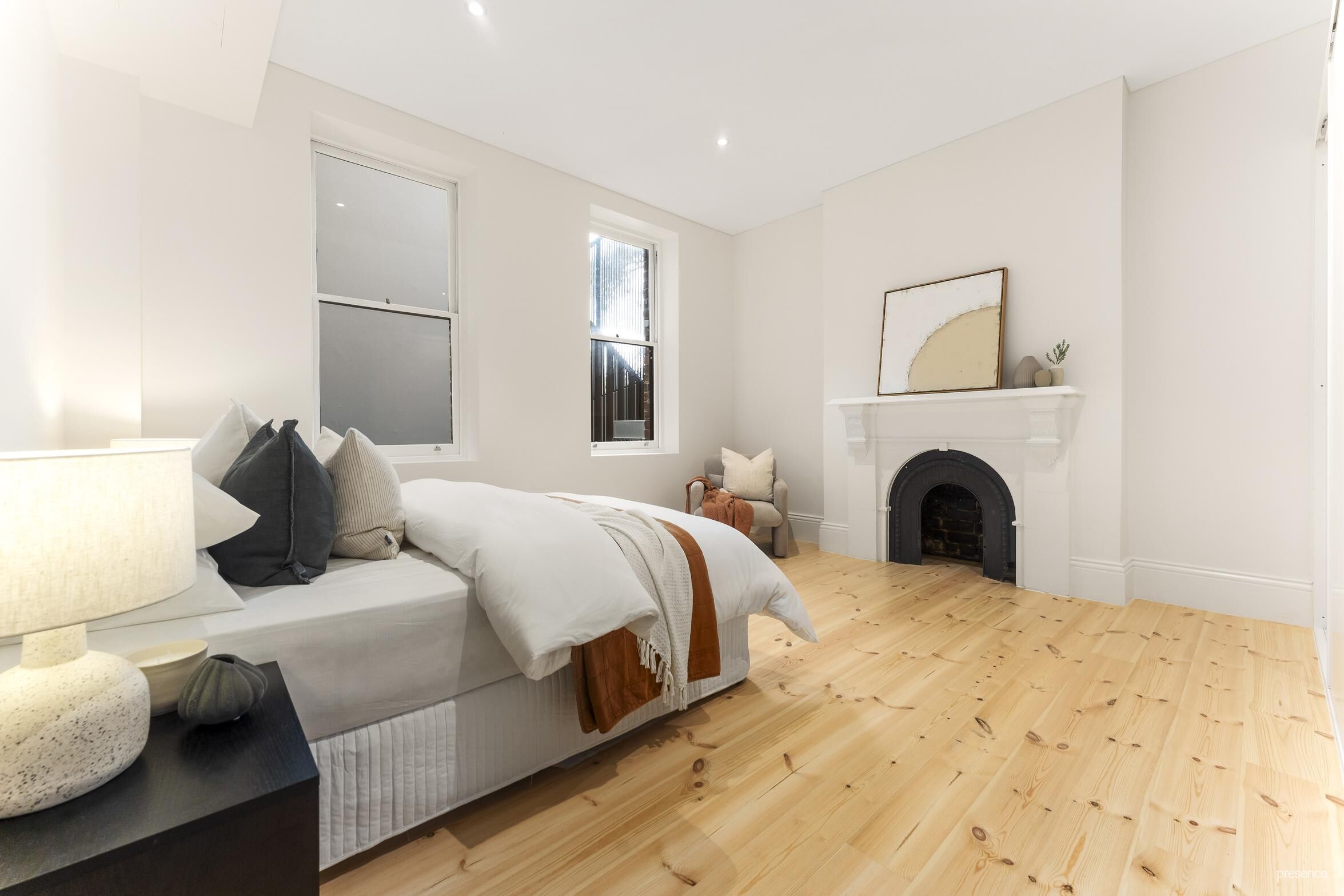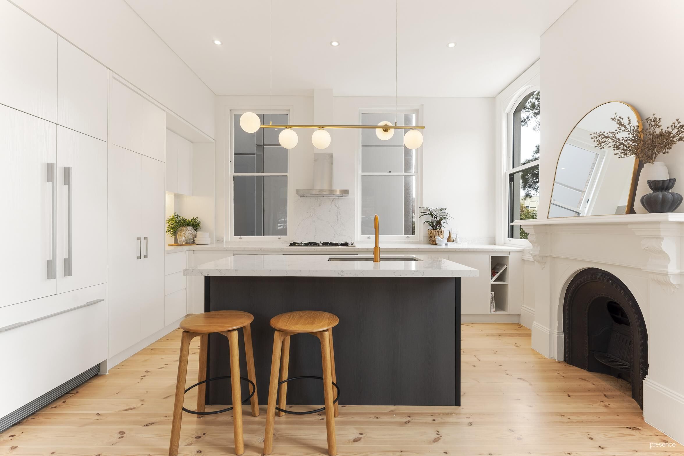 This multi-level terrace offers two generous bedrooms upstairs and an additional versatile bedroom or living space downstairs. Every detail of the home has been thoughtfully designed, featuring high-end Smeg and Fisher & Paykel appliances, an integrated fridge, and ducted air conditioning to elevate your living experience to the highest standard. Originally built in the late 1800s, this home has been meticulously restored as part of Iris Capital’s visionary redevelopment, merging historic charm with modern sophistication. The distinctive layout preserves the unique character of the property, redefining timeless elegance and effortless luxury.