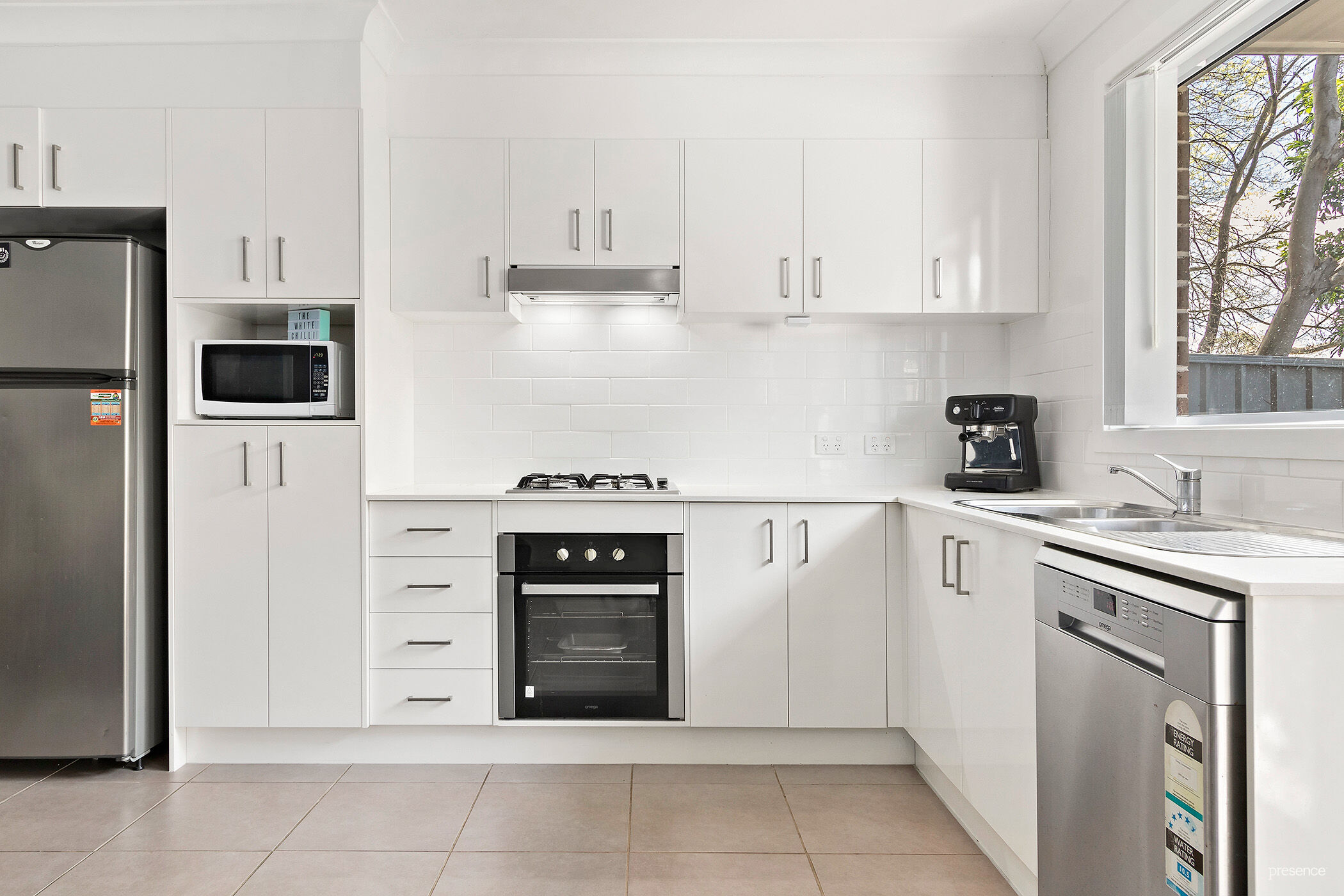 This contemporary, strata-titled townhouse boasts three bedrooms, a main bathroom, an ensuite and an additional powder room, an open plan living, dining and kitchen space and a single car garage with remote access. The kitchen boasts stone topped counters, a white subway tile splashback, a brilliant gas cooktop, Omega appliances and a view to the private backyard – the perfect spot to catch the morning sun with a cuppa or share a drink with friends on Summer evenings.