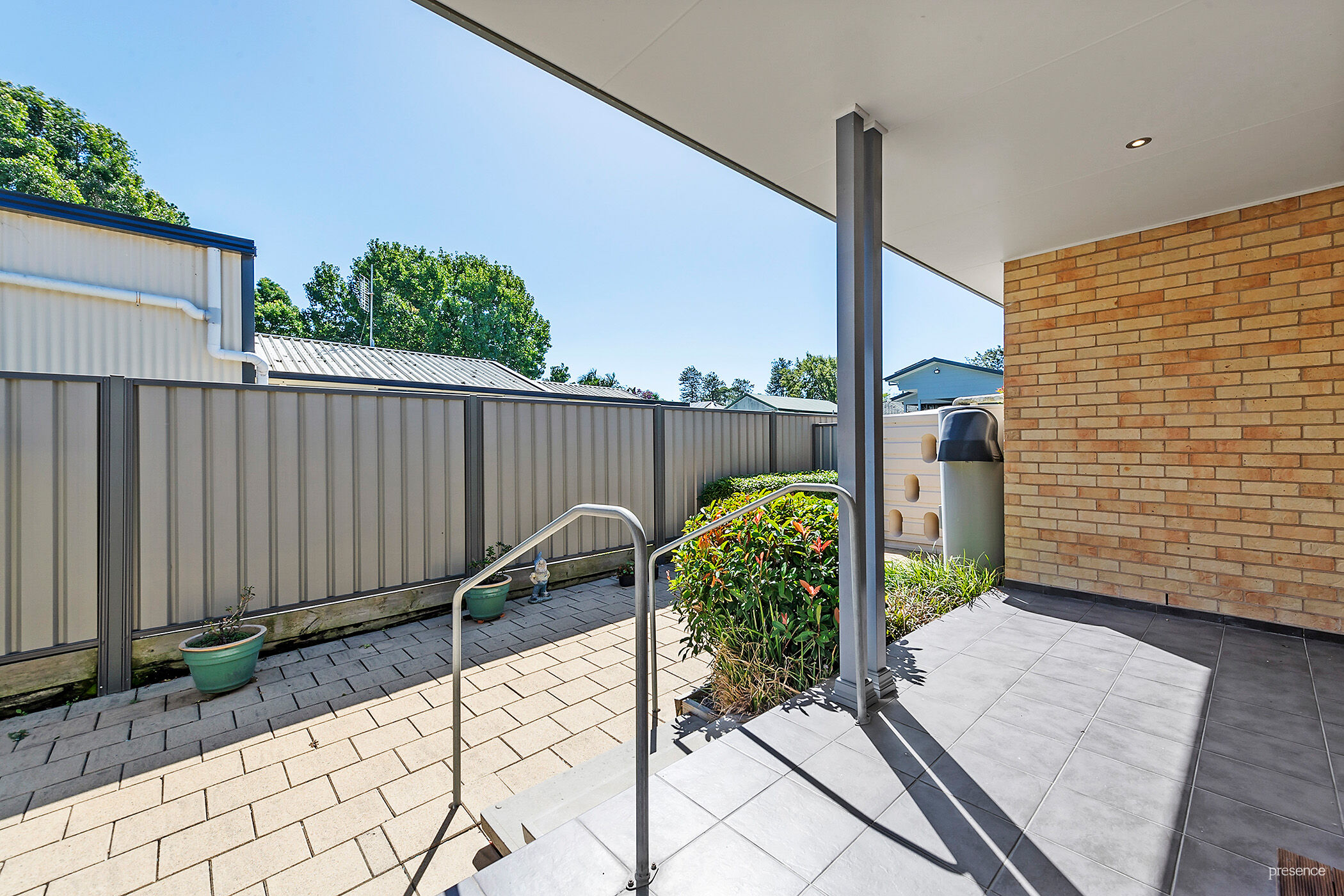 • Covered alfresco entertaining area connects to a sunny and private back courtyard that requires minimal upkeep
