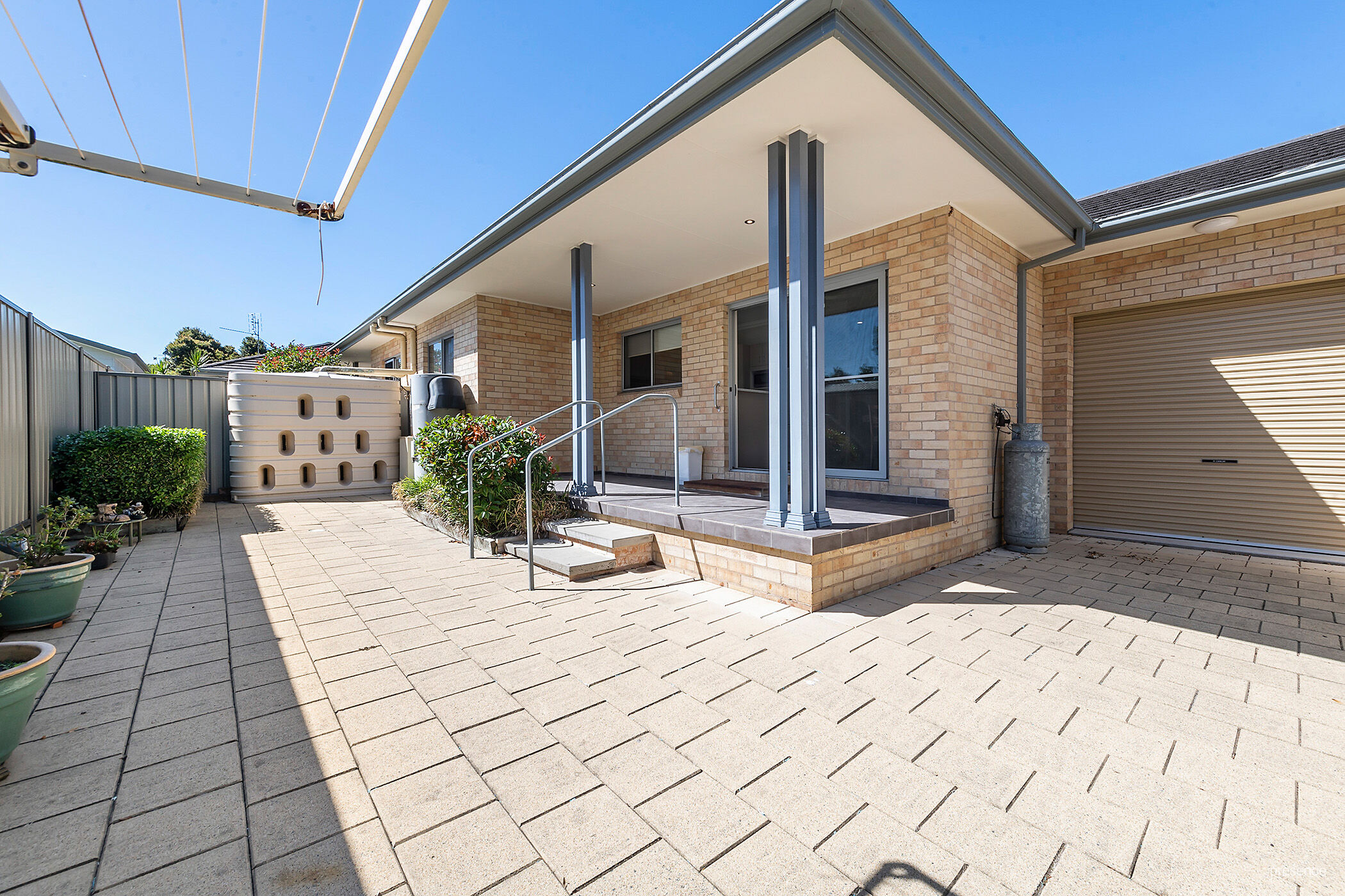 • Rainwater tank provides water to easy-care gardens