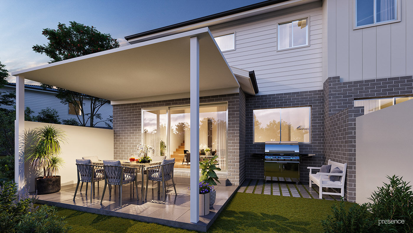 Rear undercover patio area coloured concrete or similar – optional upgrade available to yard area
