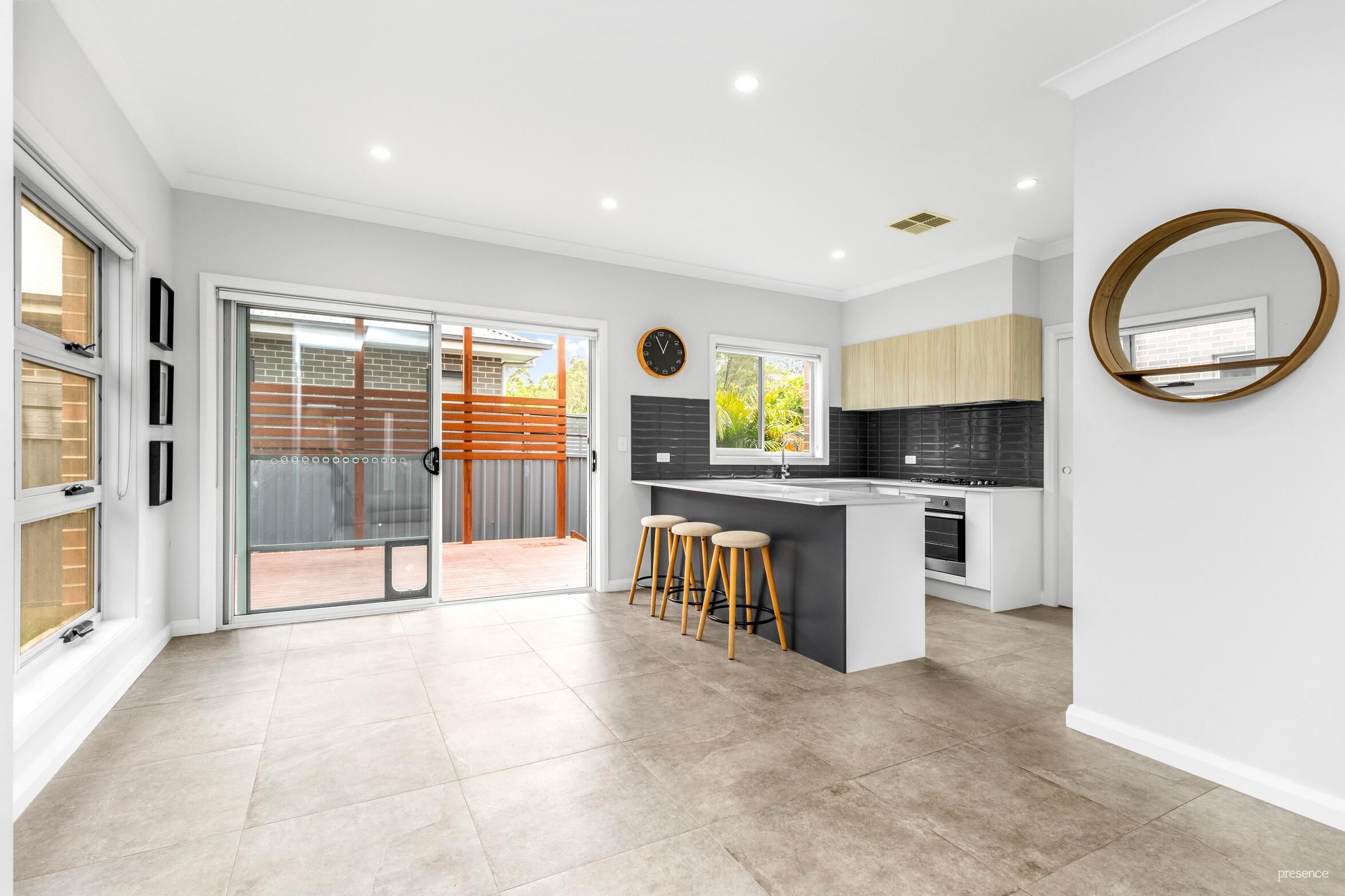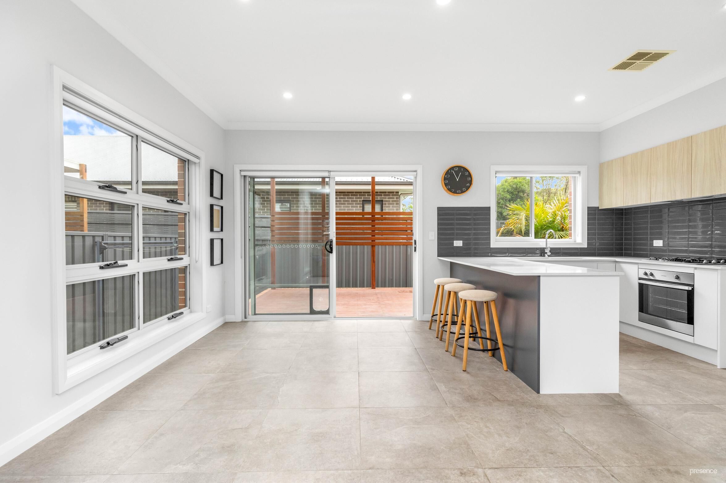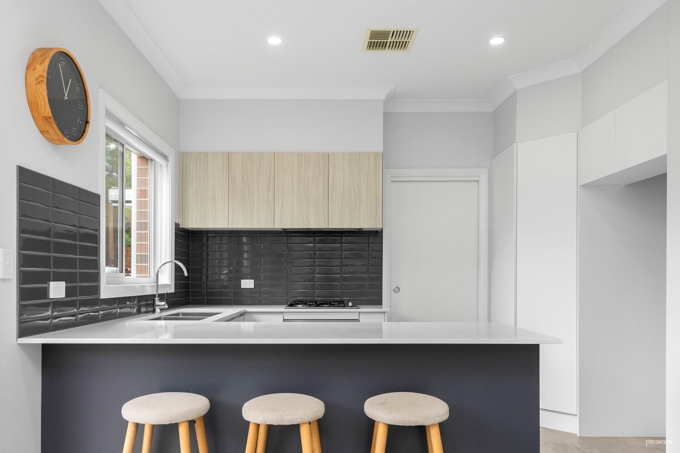 This property has a clever delineation of living and sleeping spaces, with an open plan kitchen/dining/living room flowing across the whole downstairs level and opening through sliding doors to the elevated alfresco deck, complete with trellis roof and backyard with plenty of room for the fur babies. Three robed bedrooms are situated on the first level with access to the sleek main bathroom and ensuite off the master. A modern grey and white palette extends throughout the home and it has been completed with high-end finishes.