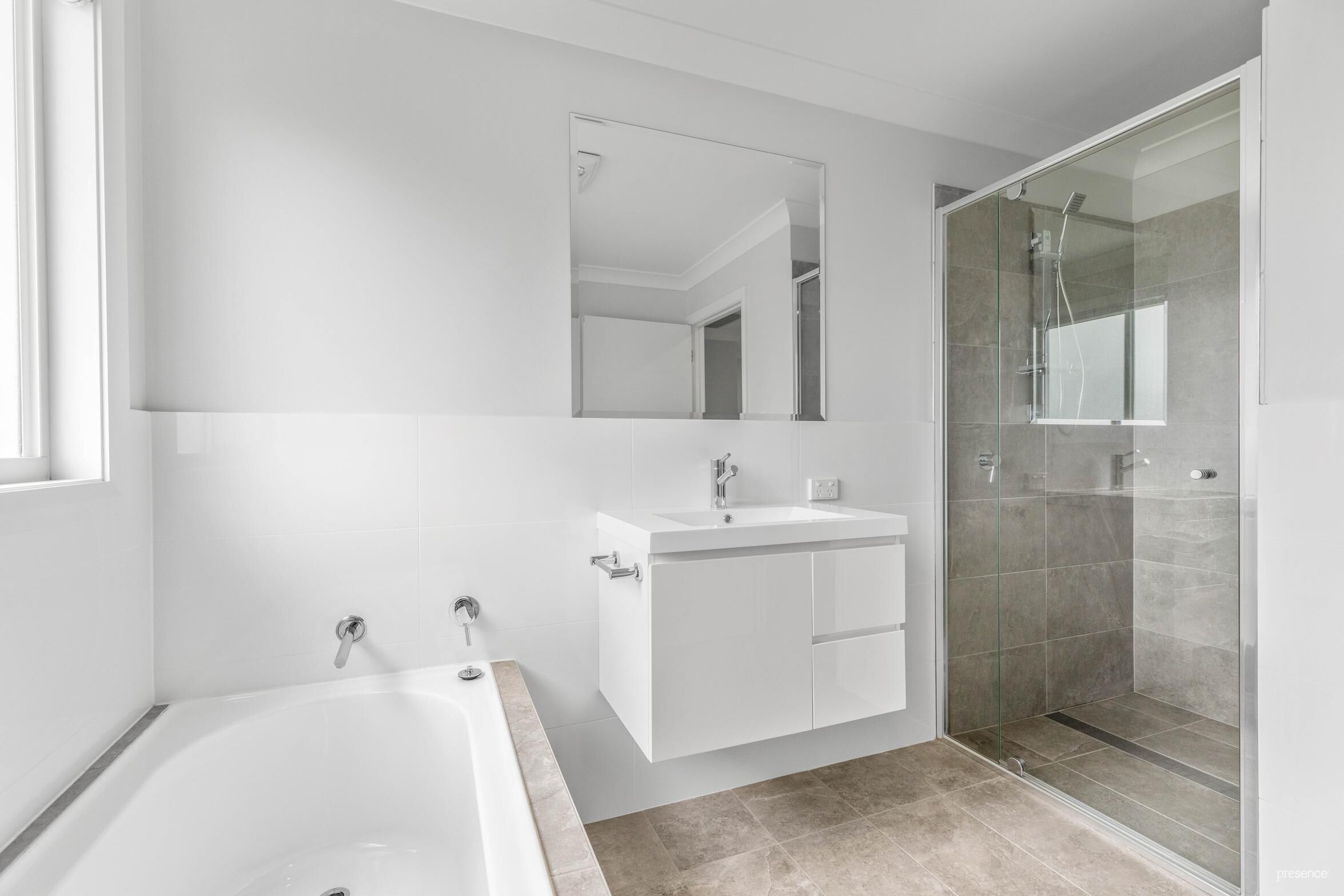 – Full bathroom and master ensuite with floating vanities, sleek tiles and soak in tub