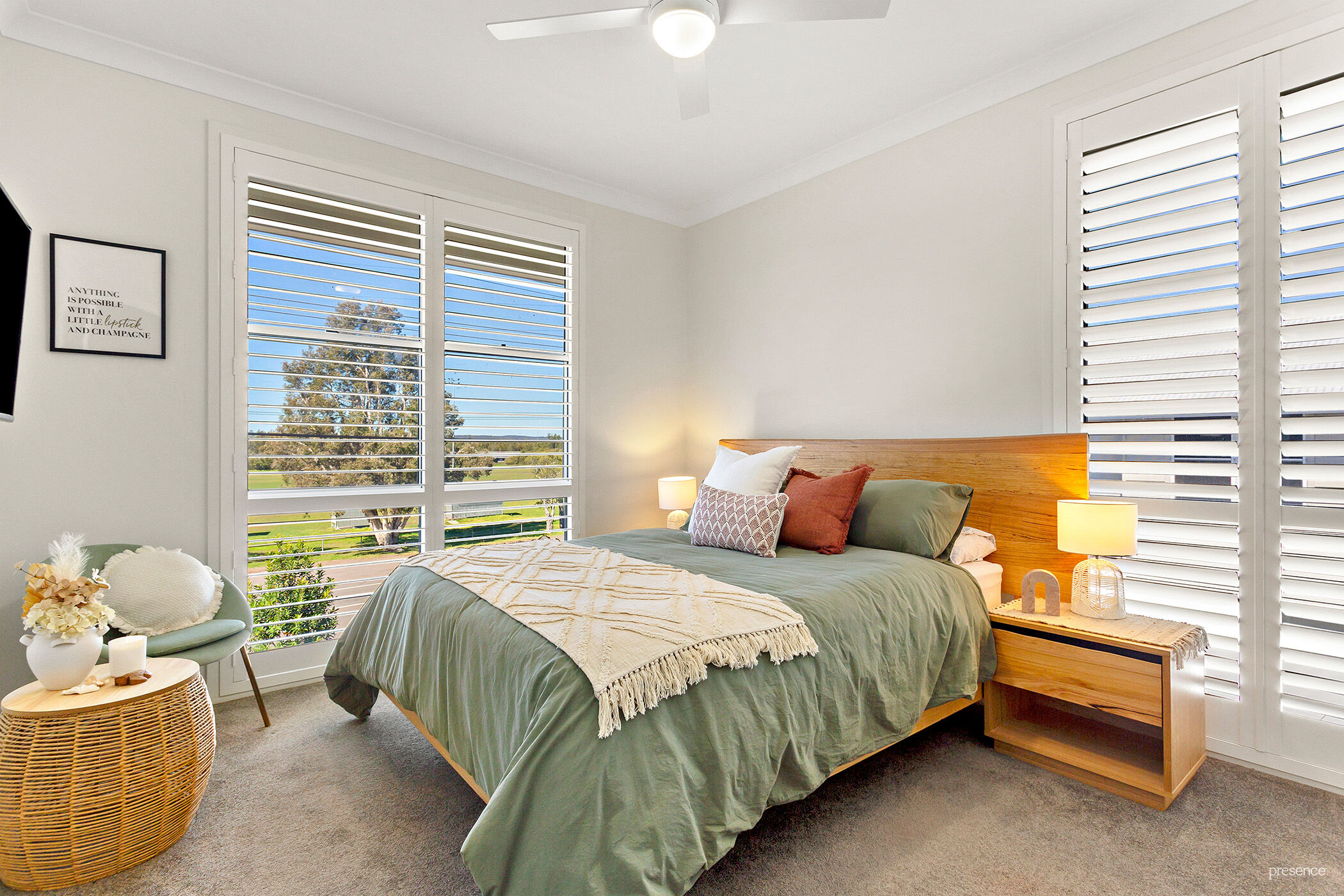 – Three generously proportioned bedrooms, each with ceiling fans. Includes a ground floor master suite (or optional guest room) with an ensuite and walk-in robe, an upper-level master bedroom with an ensuite and walk-in robe, and a third bedroom with a built-in robe.