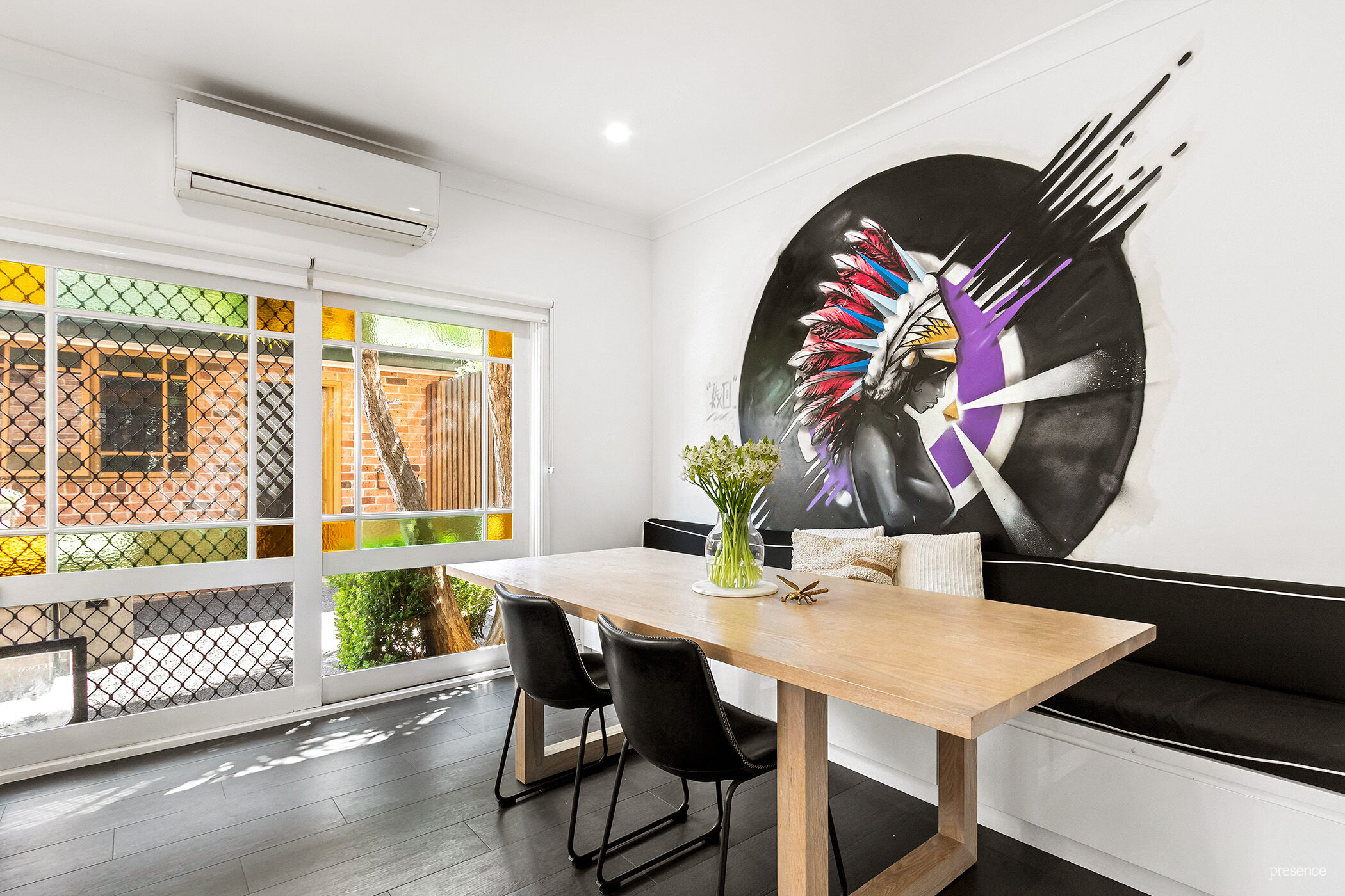 – Spacious lounge room flows into air-conditioned dining with integrated bench seating