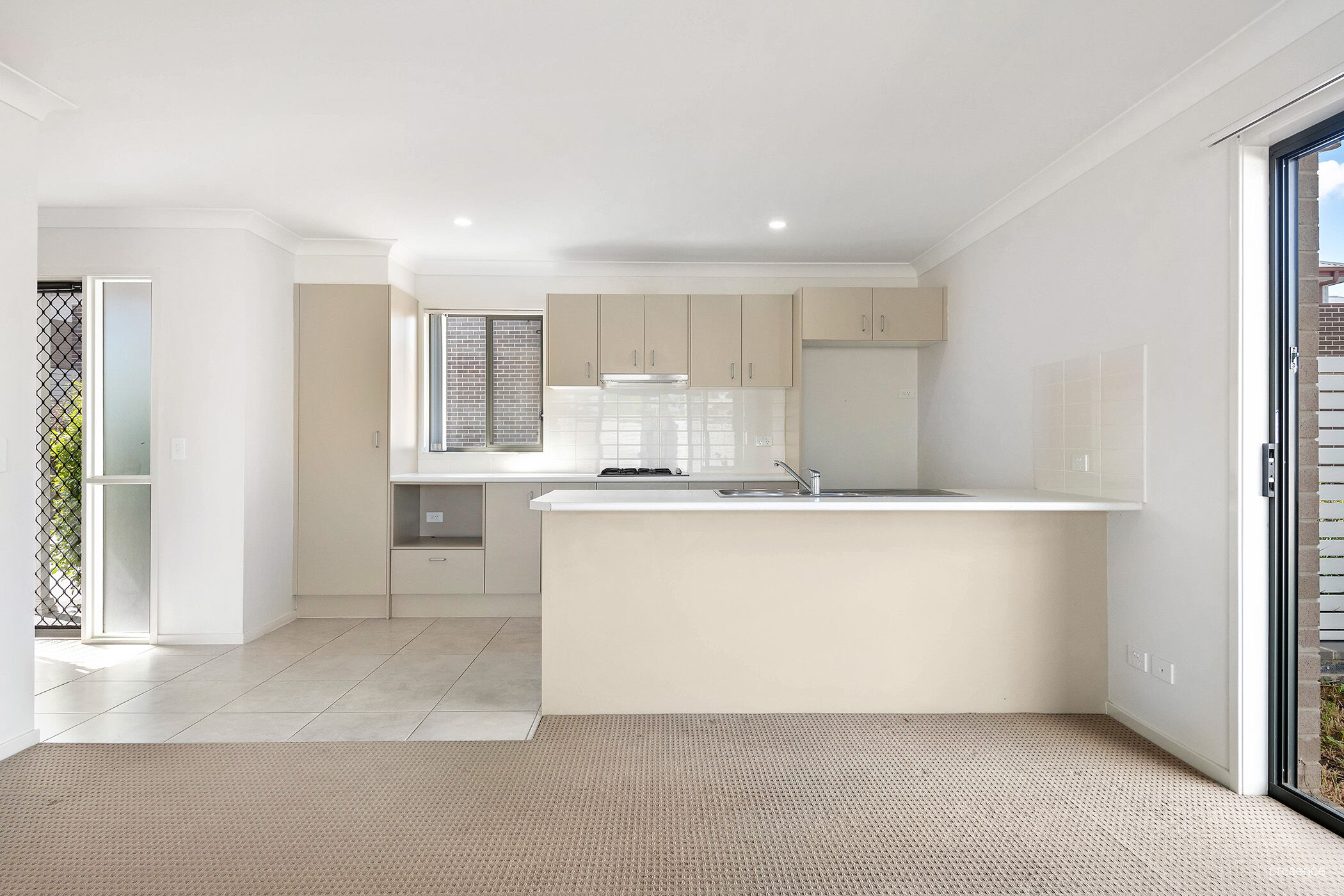 • Tiled kitchen and in wet areas, with quality carpeting through living room and bedrooms