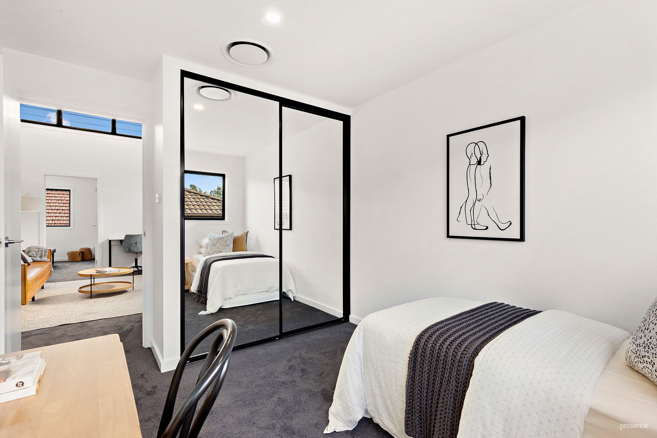 A picture of form and function with a superb design by ELK and a high-quality build by HIA award-winning Roddy Constructions, you can be the lucky first to enjoy this just completed 3-bedroom, 2.5-bathroom townhouse. One of only six owner-occupied homes in a boutique development, this property enjoys the benefit of only one common wall with northerly light and beautiful cross ventilation flooding the upstairs. Smeg kitchen appliances, zoned ducted air-conditioning and a sought-after second living space give this home a winning edge.