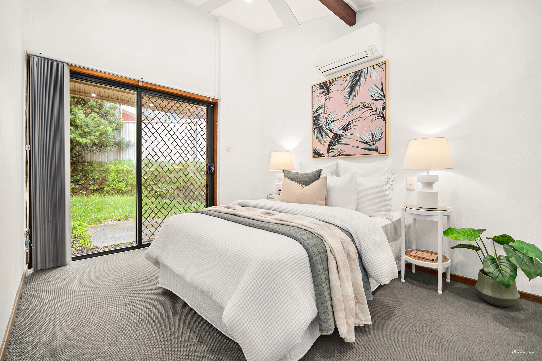 – Two good-sized carpeted bedrooms, both with mirrored built-in robes, air-conditioning and backyard access in the master.