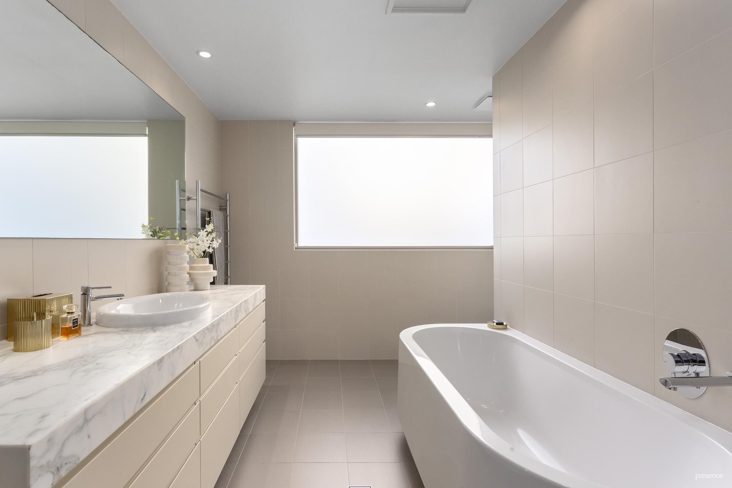The master suite is set up as a true retreat with plush carpet, a walk-in robe and a luxe ensuite with a freestanding bath, walk-in shower, marble vanity and heated floors. Two additional bedrooms, one with a built-in robe, are generously sized complete with linen curtains and zoned air-conditioning for comfort.