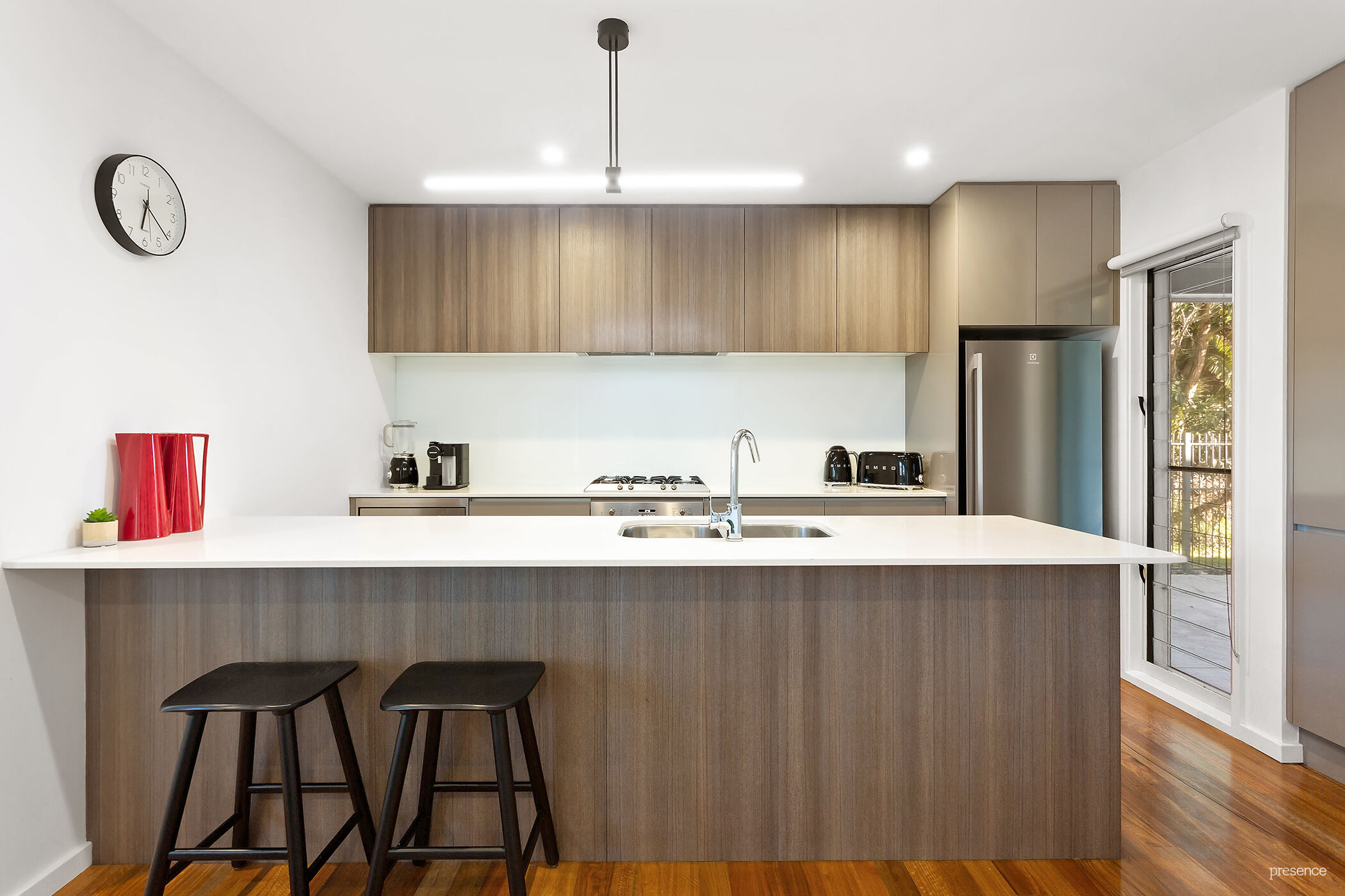 Expertly crafted by Craig Marriott Building, this development of three townhomes earned the prestigious Master Builder Excellence in Building Award in 2017. This accolade is a testament to the superior quality and craftsmanship throughout the townhouse. Its end-of-row position offers picturesque views of majestic Canary Island palm trees, while the waterfront reserve neighbouring this property provides a sense of tranquillity and privacy.