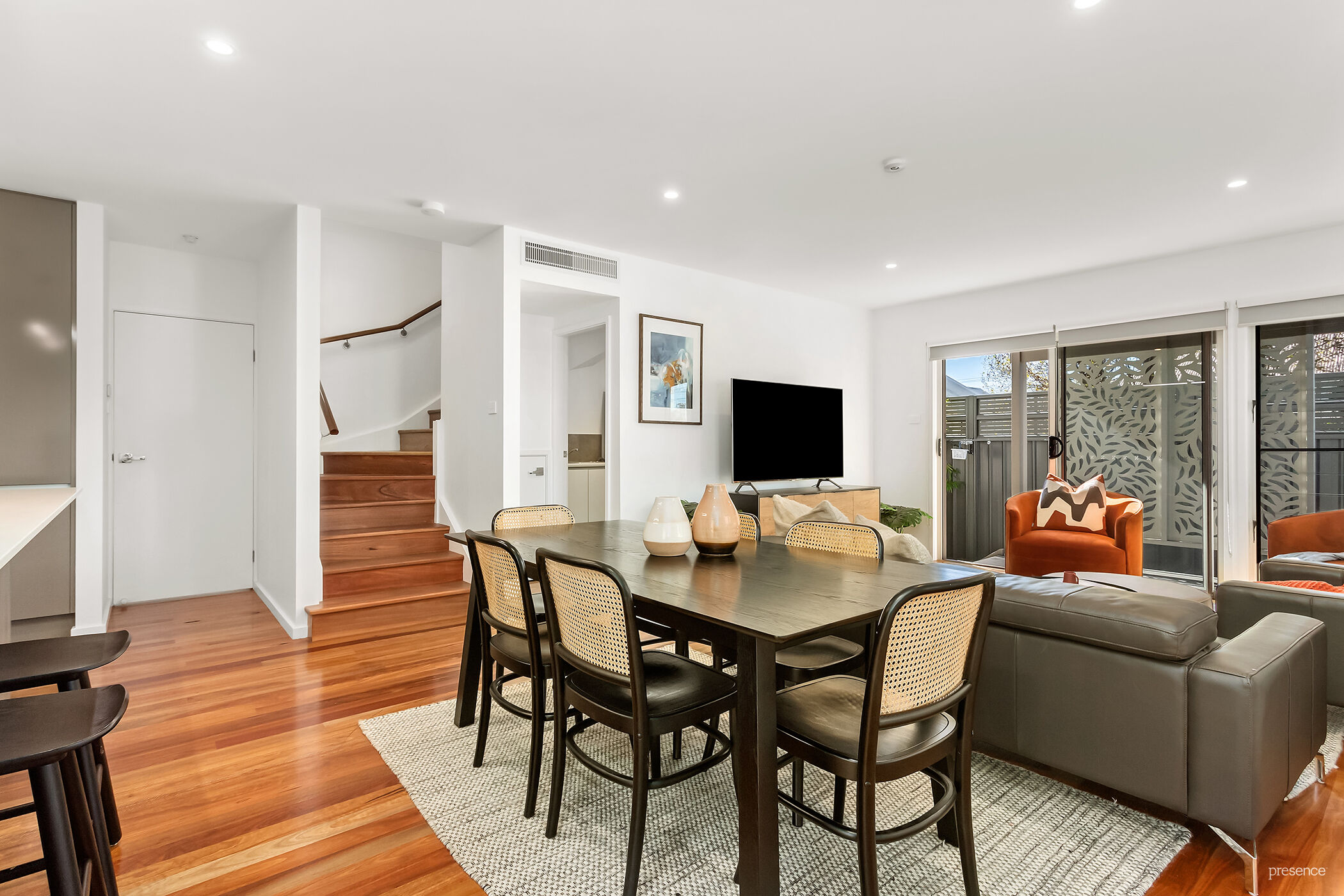 Step inside to experience bright, open-plan living with timber floors, and a Caesarstone kitchen that flows effortlessly into a bamboo-fringed courtyard—perfect for alfresco relaxation. Upstairs, you’ll find three robed bedrooms, including a master with an ensuite, and a full-size main bathroom. Additional features include ducted air conditioning, a guest powder room, and an internally accessed single garage, making this home as functional as it is stylish.