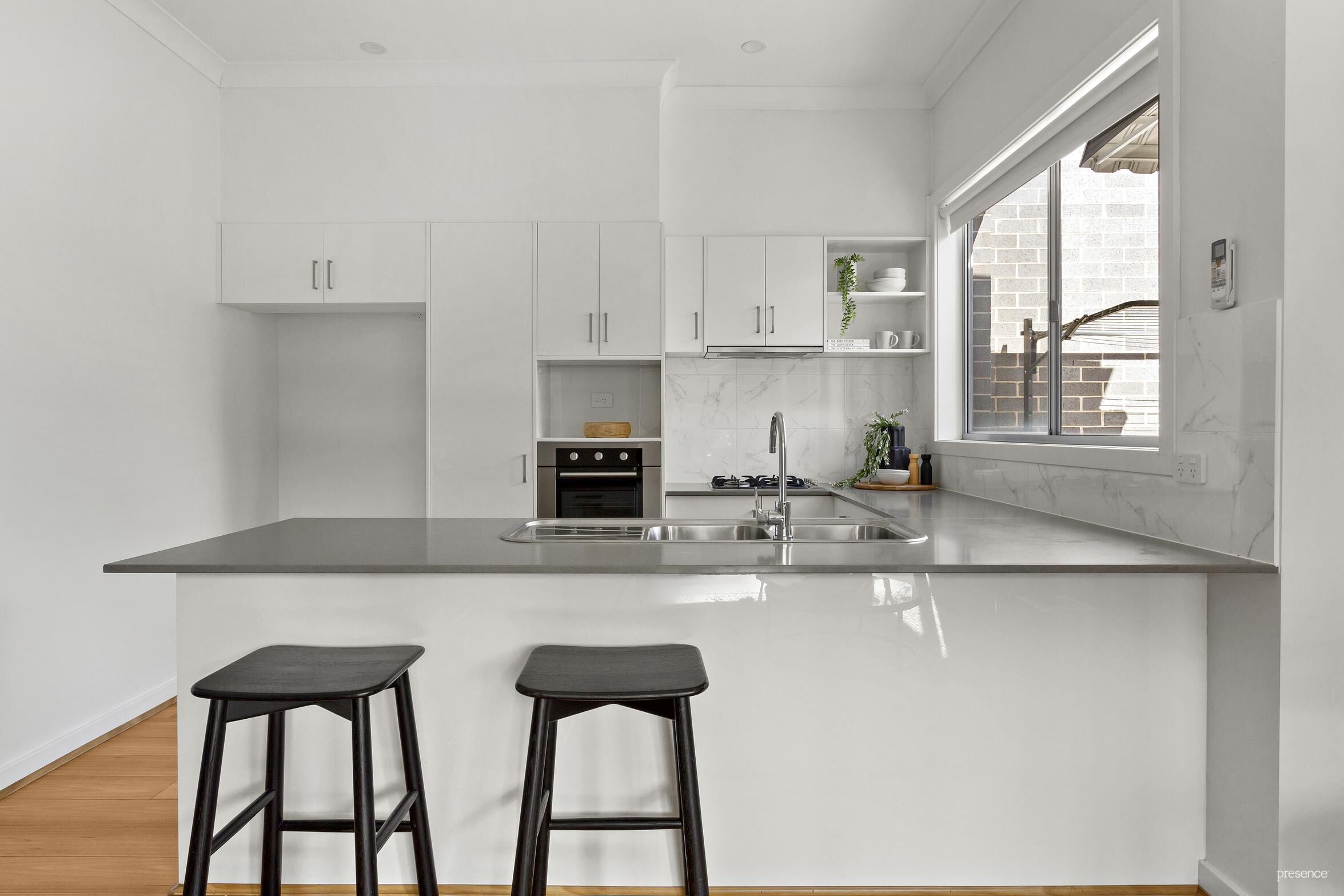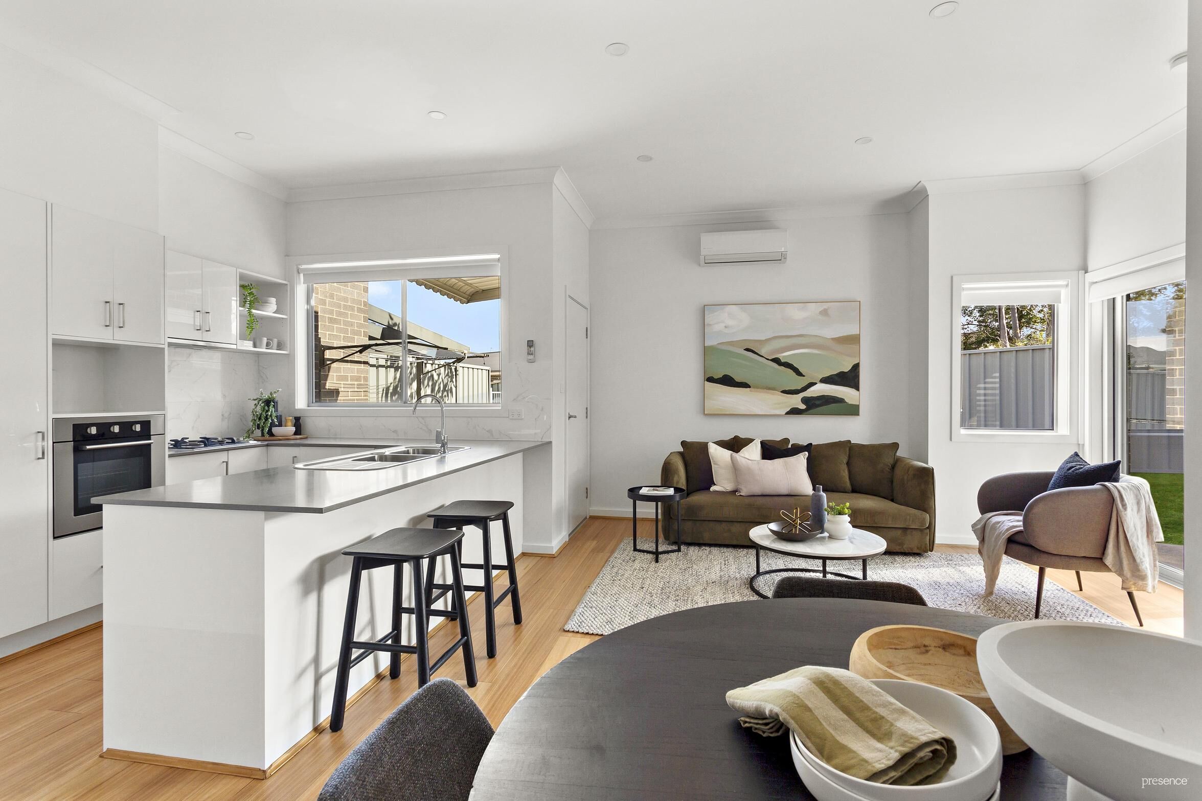 Built by the multi-award-winning Hunter Coast Homes, this townhouse showcases an exceptional level of craftsmanship. The sleek stone kitchen, equipped with Blanco appliances, seamlessly flows into the open-plan living area, which feels spacious and airy thanks to the extra height ceilings. As an end-of-row townhouse, this home offers unparalleled privacy and tranquillity with Cambronne Parade Reserve as your rear neighbour. Enjoy a generous yard, perfect for small pets or kids to play. Upstairs, a practical study nook and three bedrooms with built-in robes offer ample space. The master bedroom features an ensuite and walk-in robe, while the other bedrooms are served by a well-appointed family bathroom.
