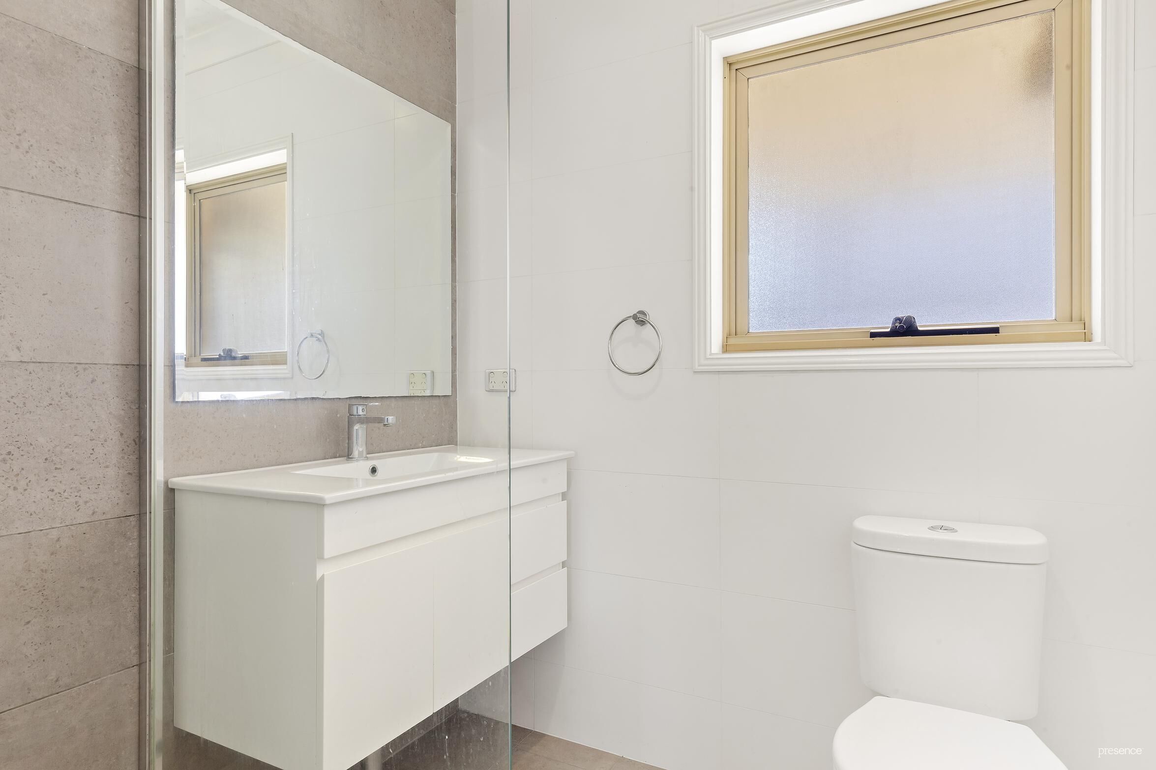 Upstairs, you’ll find two good-sized carpeted bedrooms, both with mirrored built-in robes. The master bedroom adds a ceiling fan and air-conditioner, for year-round comfort, and opens onto its own charming Juliet balcony. And when you’re hoping to unwind at the end of a long day, the second bedroom offers access to a wide, covered, north-facing verandah, perfect for relaxing while sipping your favourite beverage. The family bathroom is also located on this level, and features a shower and floating vanity to complement its contemporary appeal, while a double linen cupboard adds convenience.