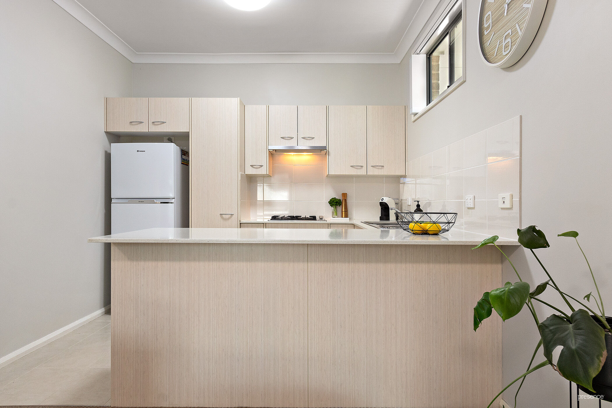 • Contemporary kitchen with ample fridge space, excellent storage, and a dishwasher
