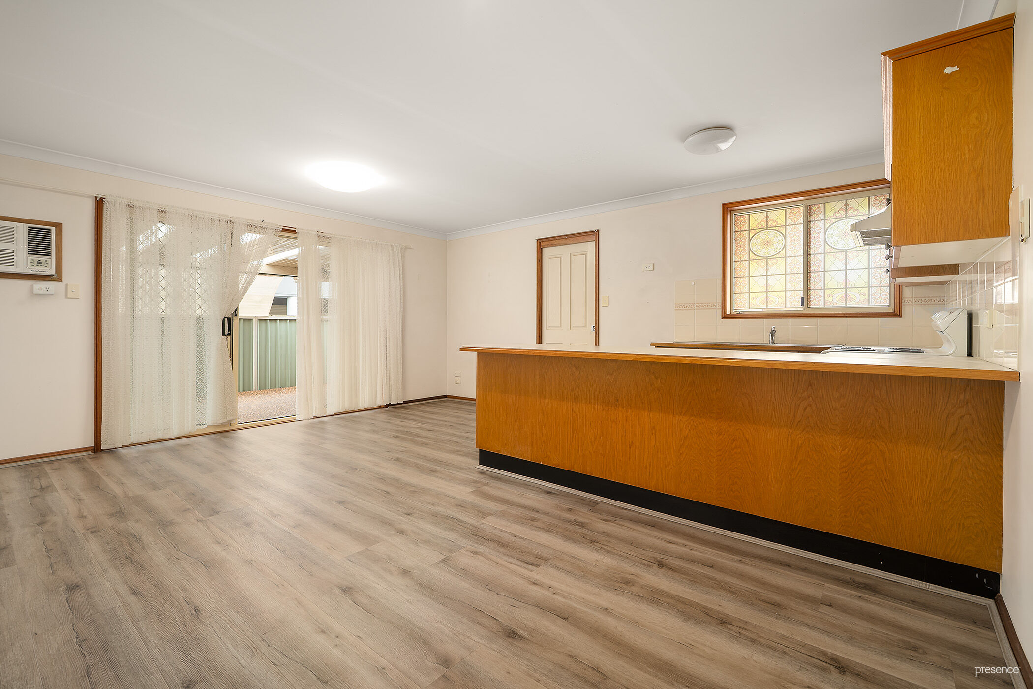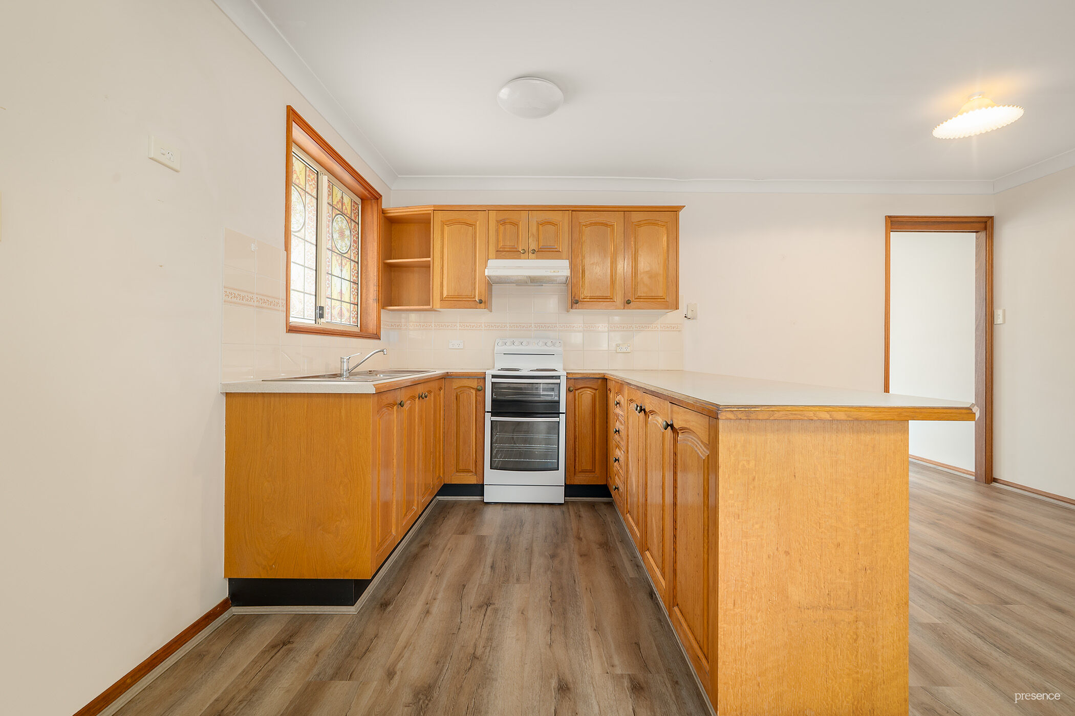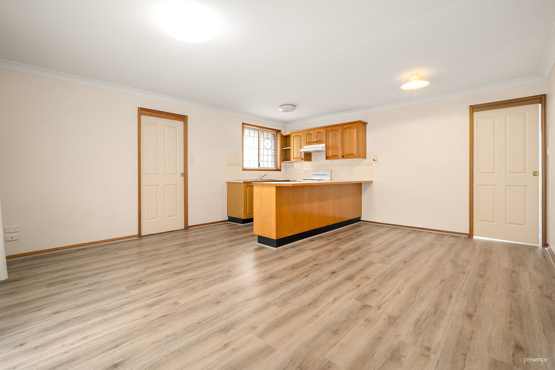 Radiating a bright and open atmosphere with new flooring throughout, this delightful residence is as low-maintenance as it is comfortable. The home features two generous living spaces, including a spacious lounge with a bay window that sets a welcoming tone as you step inside. At the rear, the open-plan area invites effortless living, offering ample room for both a cozy lounge and a dining setting. Adjoining, the well-appointed timber kitchen, complete with a pristine free-standing cooker, provides everything you need to create delicious meals.