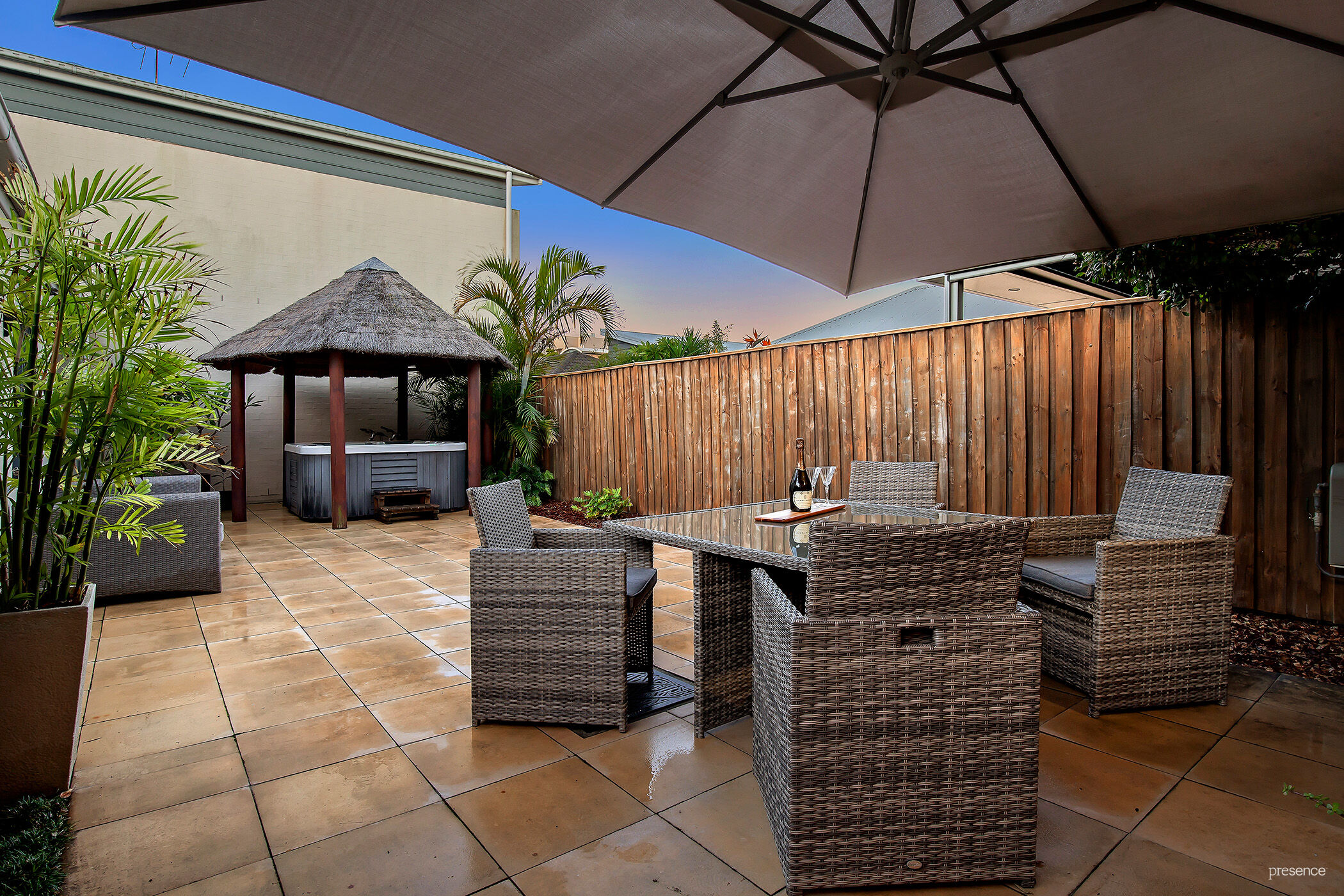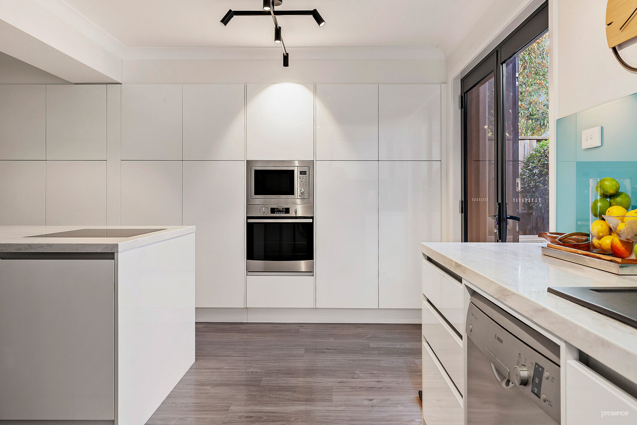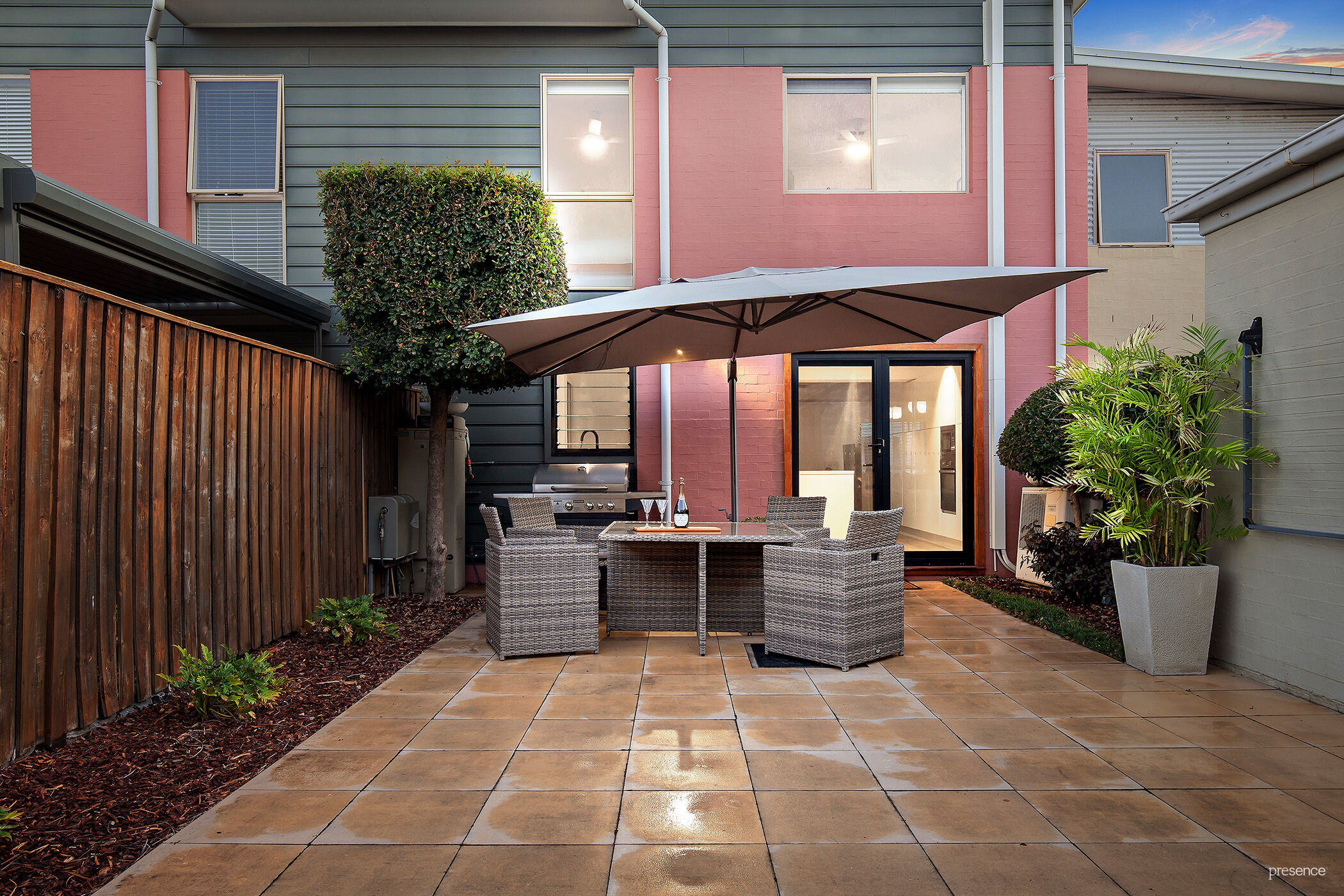 With a truly luxurious vibe, this large property with its open plan living and contemporary kitchen flowing seamlessly onto the generous backyard, is an entertainer’s dream. Invite friends around for an Aperol spritz and gather around the sublime kitchen island with its luxurious marble look, perhaps over a charcuterie board or your latest culinary foray. Enjoy a bottle of bubbles before wandering out to dinner at Elementa just 450 metres away or into Honeysuckle or the CBD – 5 minutes in an Uber.
