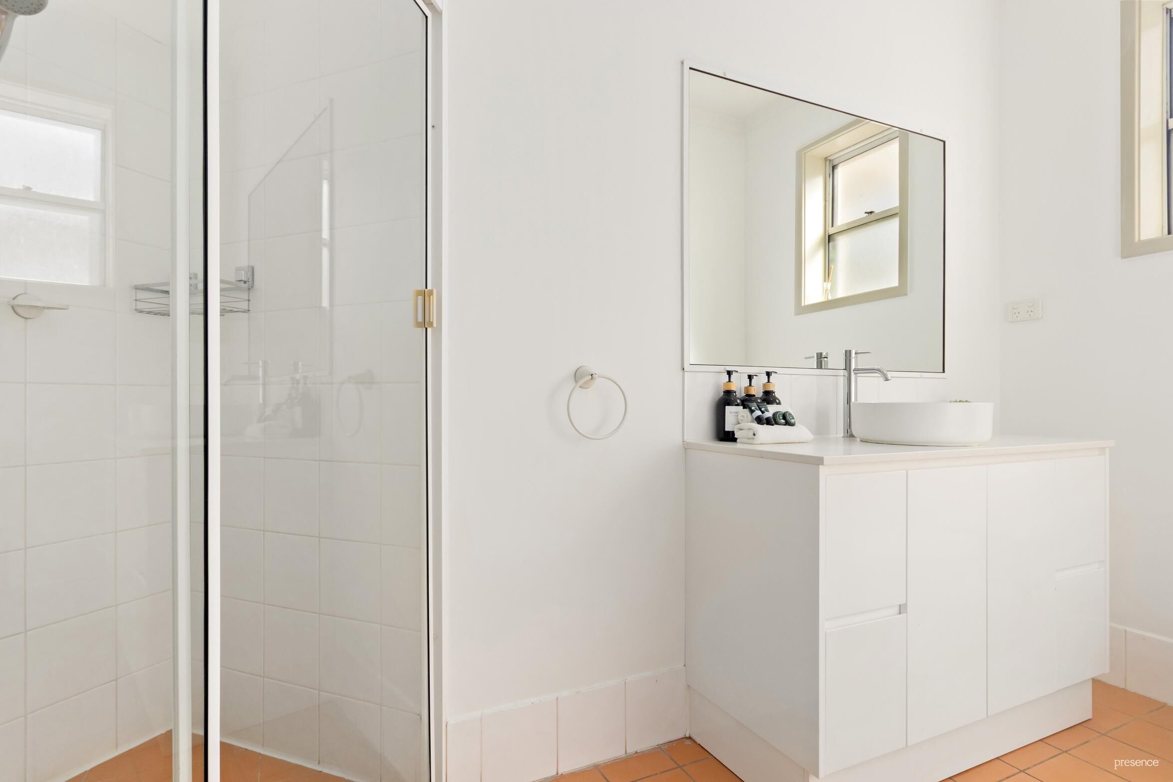 Inside, the apartment feels wonderfully bright and relaxed. High ceilings, timber floors and soft neutral décor give the open plan living space a calm, airy feel, while large windows and sliding doors invite in sea breezes and morning light. Step out onto the balcony with your coffee and you’ll catch a view of the ocean while the day begins around you. The modern kitchen anchors the living zone, while three bedrooms and two bathrooms sit privately away from the social spaces, including a main bedroom with its own ensuite, and another with balcony offering a quiet retreat when the day winds down. Two secure parking spaces add everyday convenience, while the boutique complex of just four residences keeps things peaceful and tightly held.