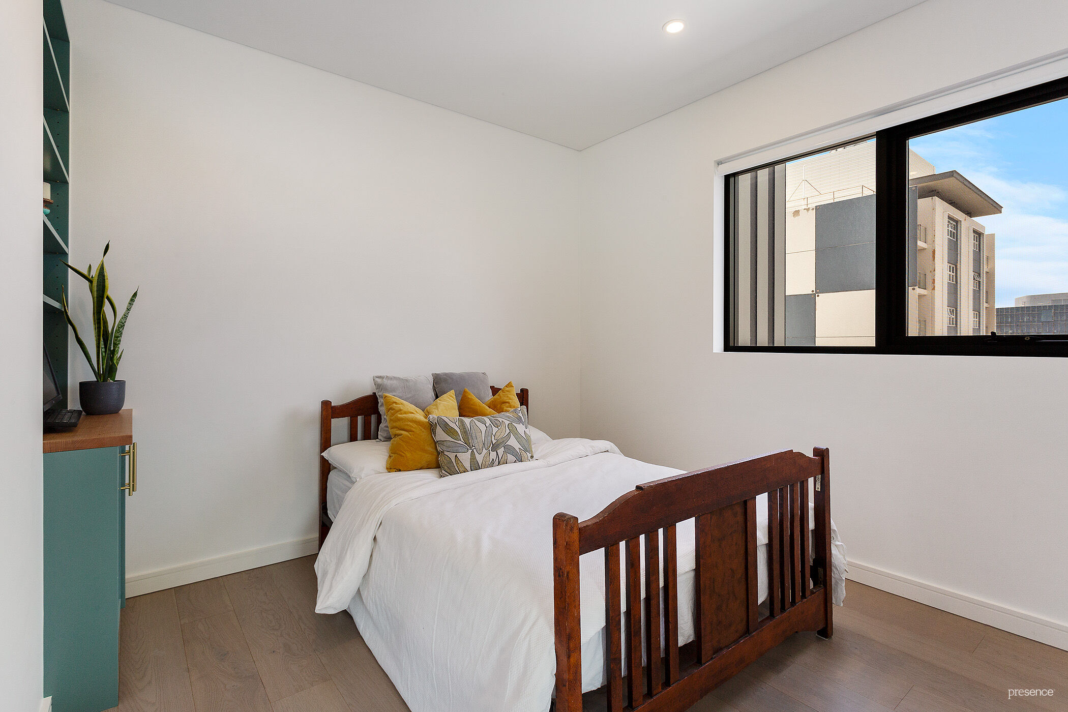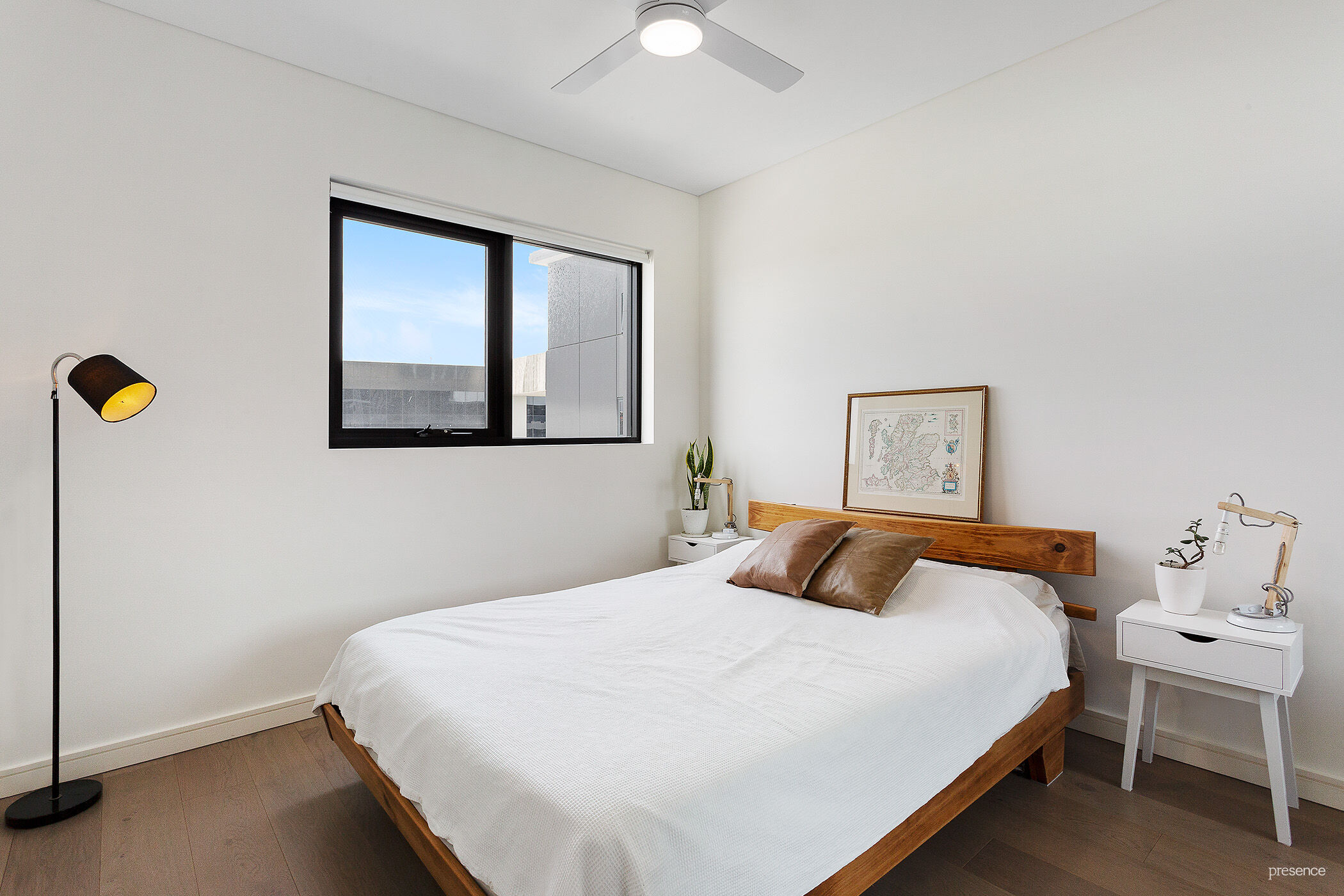 Upon entry, the state-of-the-art kitchen is adorned with gorgeous stone benches and natural coloured, sleek cabinetry. The kitchen flows seamlessly through to the open-plan living and dining area while further continuing out onto your sun-filled balcony with city, district, and harbour views. The two sizable bedrooms provide comfort and mirrored built-in robes with the master featuring a built-in study nook.