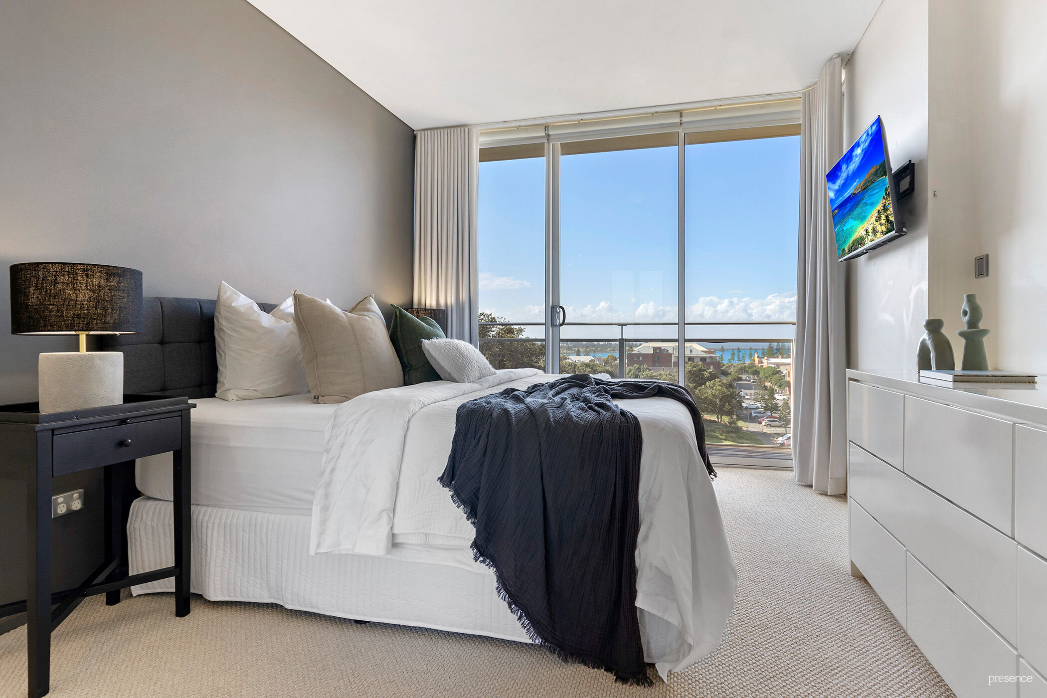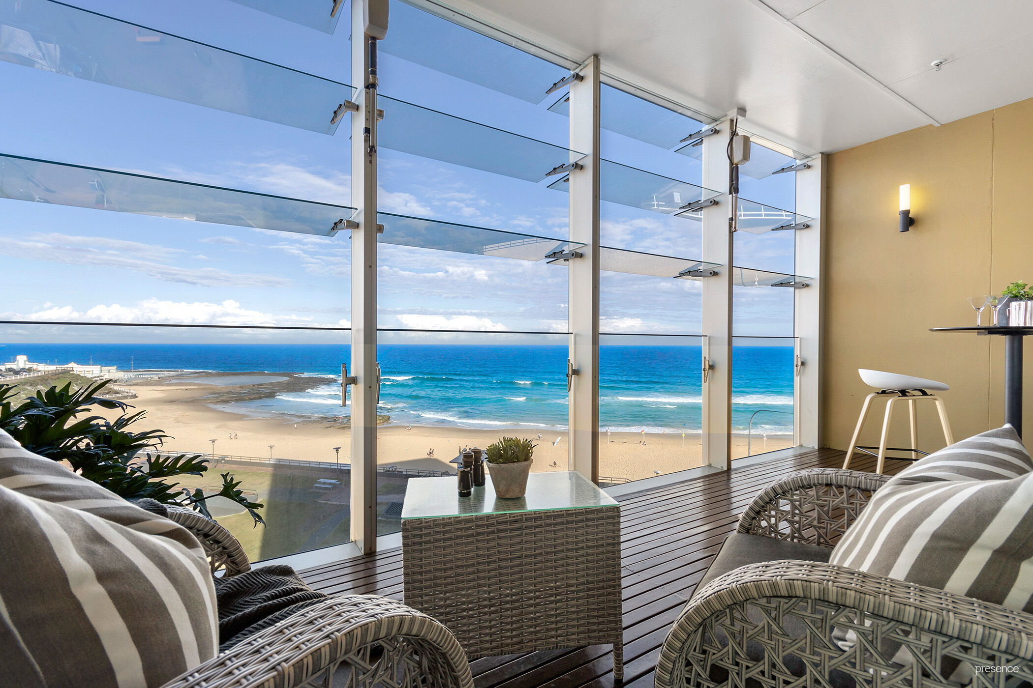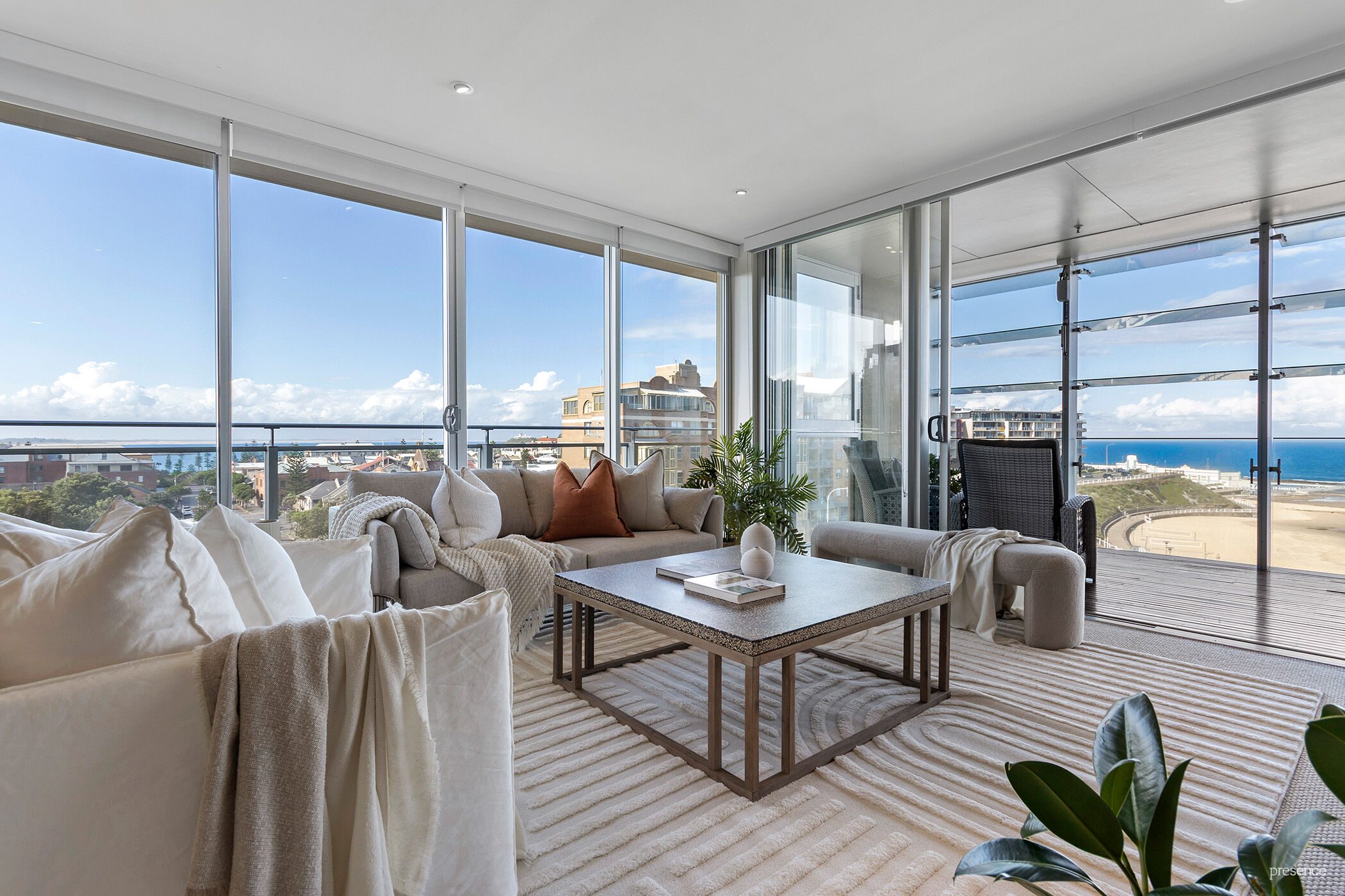 Nestled in the coveted northeast corner of the exclusive York Apartments, directly opposite Newcastle Beach, lies a lifestyle coveted by many but experienced by only a fortunate few. Picture yourself drifting off to sleep to the gentle lull of rolling waves, casually assessing surf conditions from the comfort of your own home and delighting in the breathtaking sight of whales during their annual migration and dolphins joyfully playing in the ocean. From Pacific Park to Newcastle Harbour, and from Stockton Bight to Nobbys headland, the vistas from this vantage point are nothing short of mesmerising.