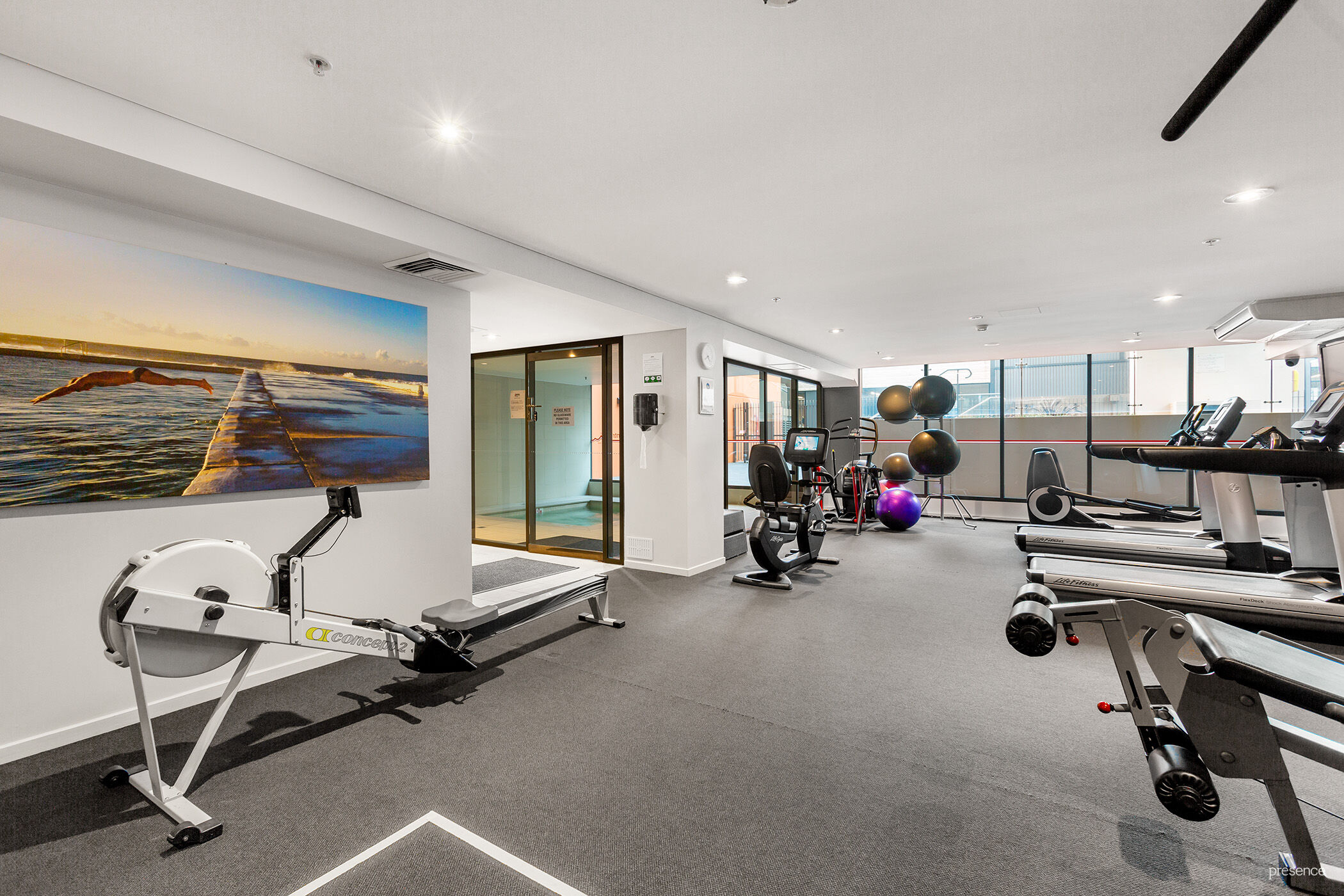 Fully equipped gymnasium, heated spa pool and steam room