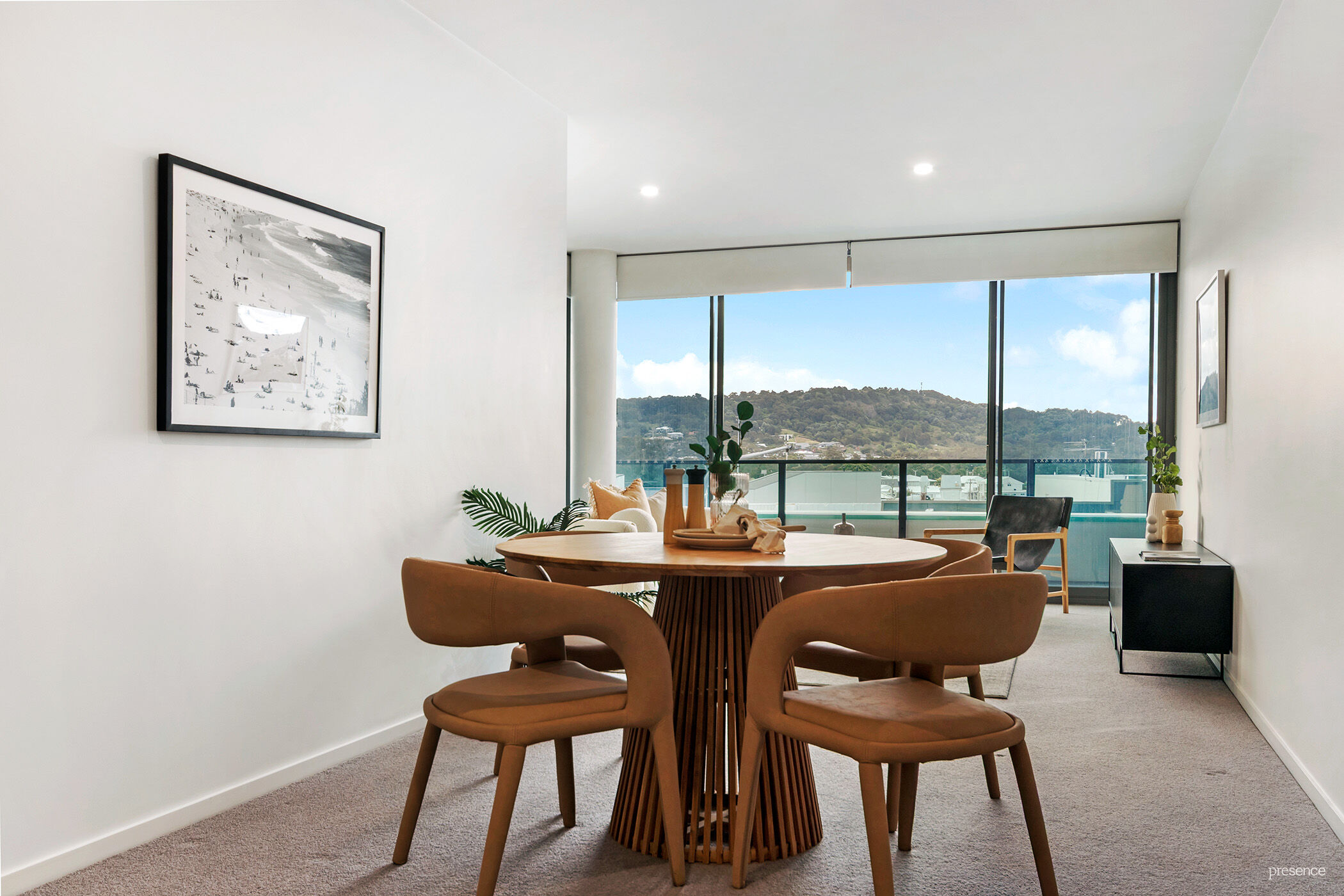 – The apartment is set within a superb resort-style complex with infinity-edge pool, timber sun decks, lush landscaping, and a well-equipped gym.