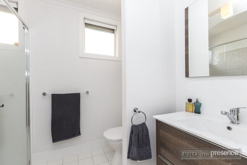 – Chic bathroom with shower and wall-hung vanity; internal laundry
