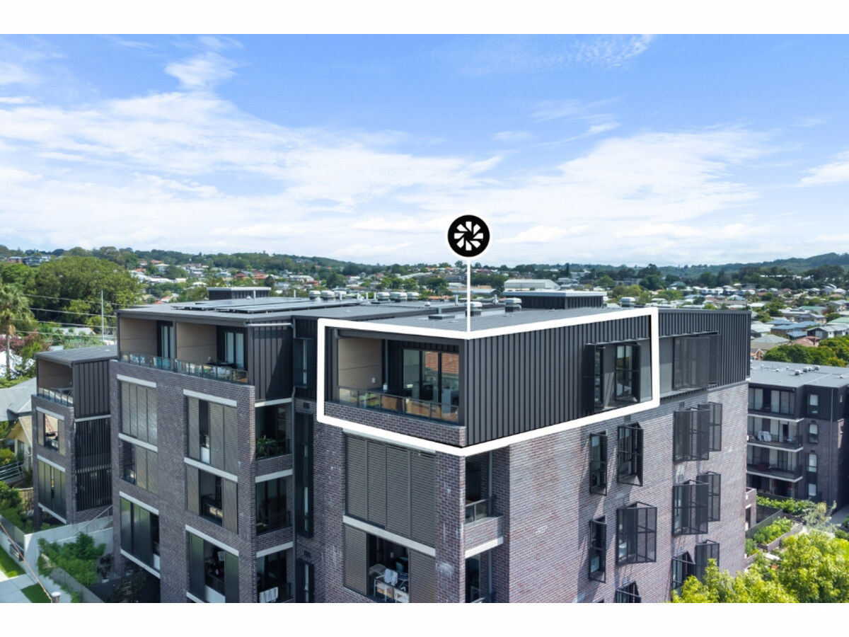 Glass sliding doors lead to a generous entertaining balcony, offering sweeping urban and district views from this top-floor, penthouse-level position. The sunlit living area is complemented by an internal laundry hidden behind bi-fold doors and a handy linen pantry.