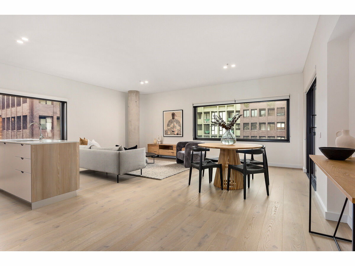 Full of 21st Century interiors, Fabric House offers residents timeless desirability from the moment you see the building on Wolfe Street in Newcastle’s East End. Surrounded by a vibrant city centre this beautiful apartment is waiting for you to make it your home. Walking into your new home you’re greeted with a lovely entrance hall leading you past the main bathroom and into the first bedroom complete with an ensuite and built-in robe. Around the corner you will find the interior laundry with plenty of space for extra storage, while next door is the second bedroom with a built-in robe along one wall and access to the private balcony on the opposite through large sliding glass doors. A large open plan living, dining, and kitchen offers views of the gardens, access to the balcony, and features a curved wall and window which are featured throughout the building. The kitchen offers plenty of space for the aspiring home chef, complete with a 4-burner gas stovetop, island bench, stone bench tops, and lots of cupboard space.
