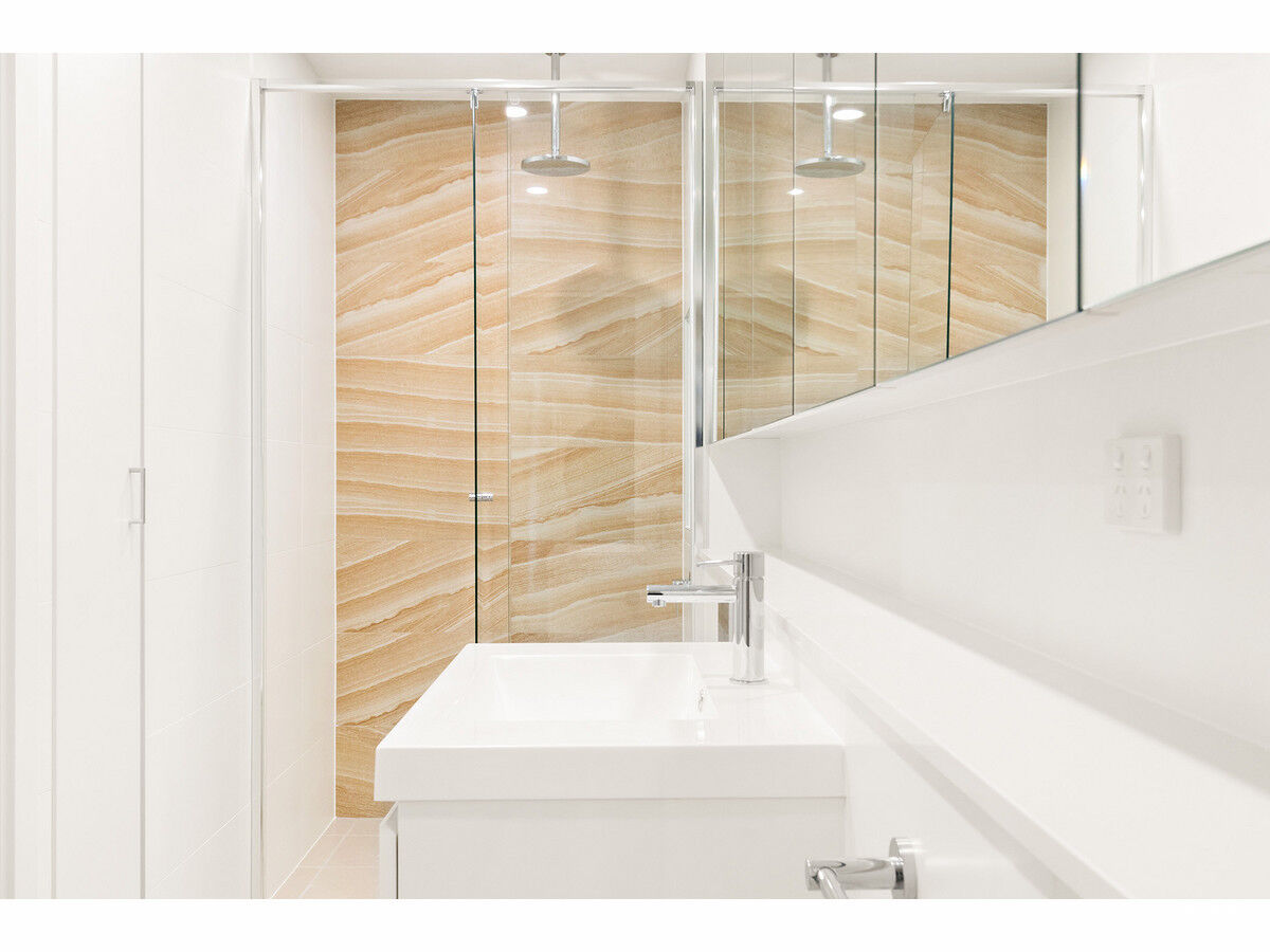 – Stunning dual access ensuite showered bathroom with feature sandstone accent wall