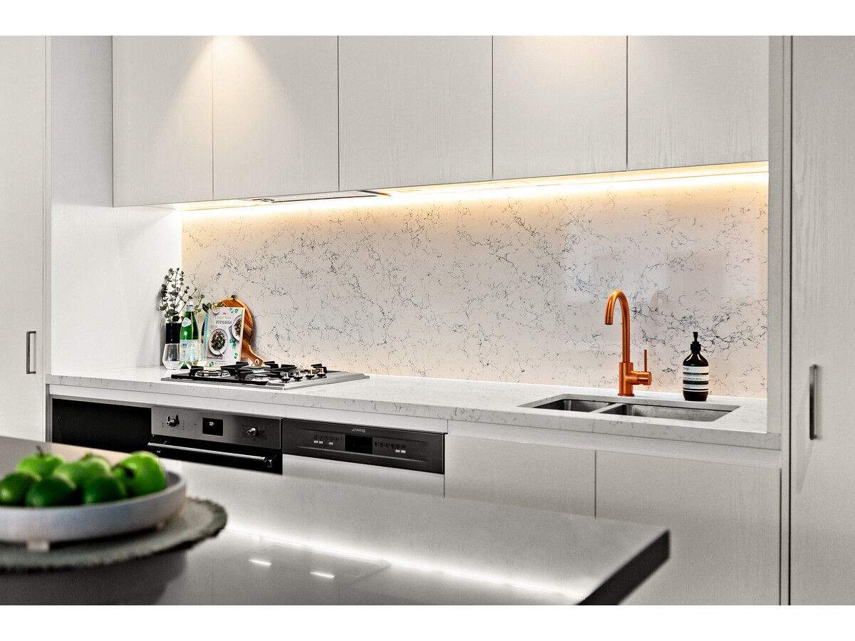 • Designer kitchen with stone benchtops, Smeg appliances and ample storage