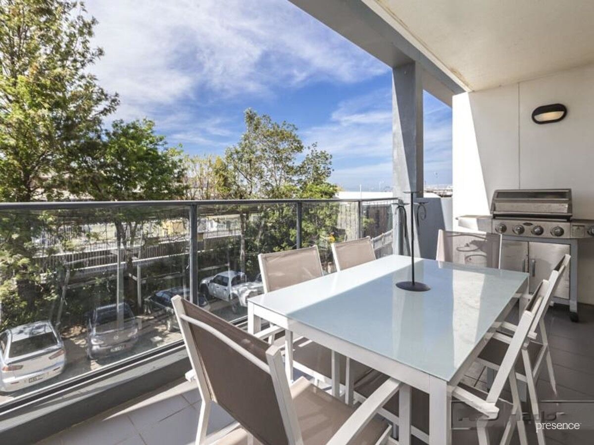 A spacious air-conditioned living and dining domain with study nook opens to a wide alfresco balcony while the modern kitchen features a gas cooktop and dishwasher. Two intimate bedrooms are fitted with built-in robes and open to huge private terrace. The master has an ensuite and there is a full family bathroom and European laundry. Other highlights include secure lift entry and the urban living musts of basement parking.