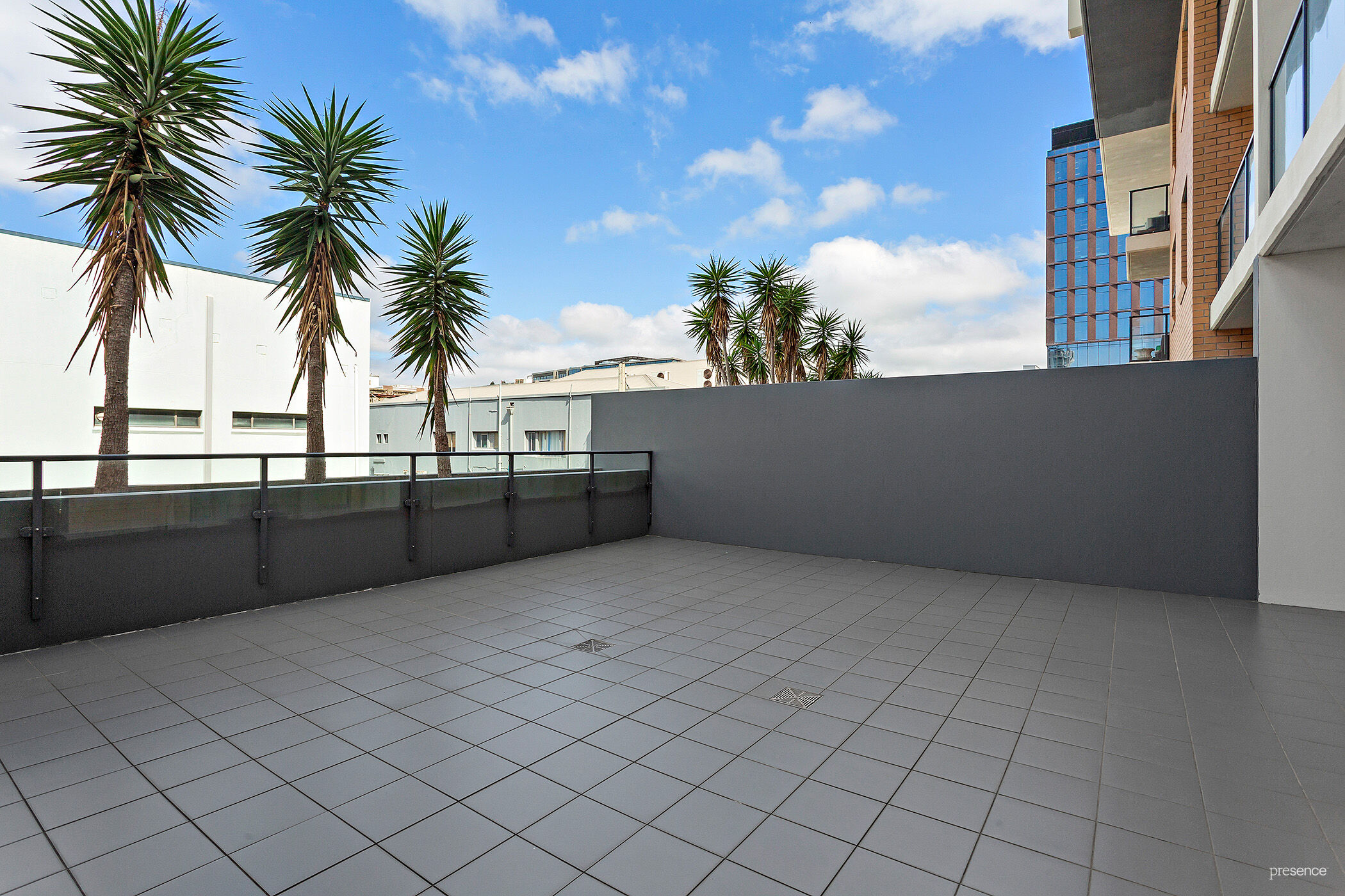 A spacious air-conditioned living and dining domain with study nook opens to a wide alfresco balcony while the modern kitchen features a gas cooktop and dishwasher. The two bedrooms are fitted with built-in robes and open to huge private terrace. The master has an ensuite and there is a full family bathroom and European laundry. Other highlights include secure lift entry and secure basement parking.