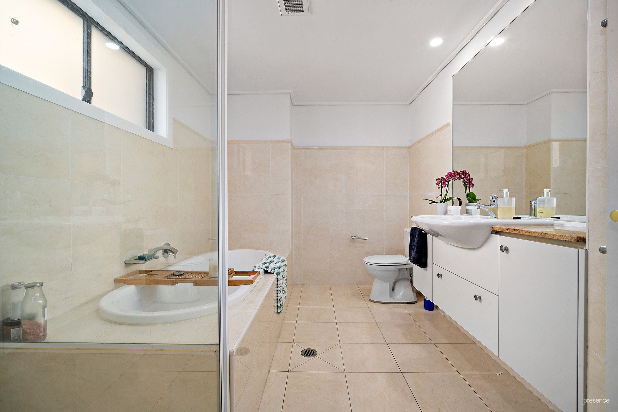 – Private master suite with built-in robes, private ensuite with large soaker tub, shower, vanity, and w/c