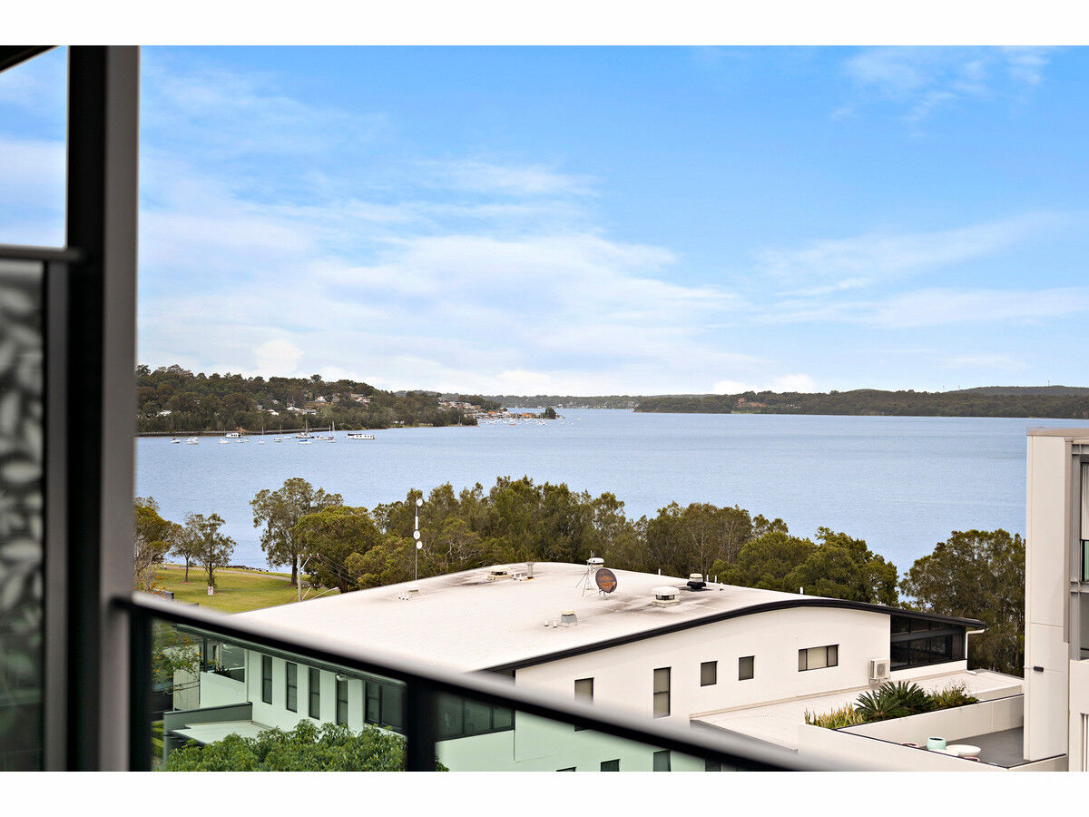 – Indoor/outdoor living, with both the open plan living/dining and balcony boasting picturesque views across the boat-studded lake to the blue hills beyond.