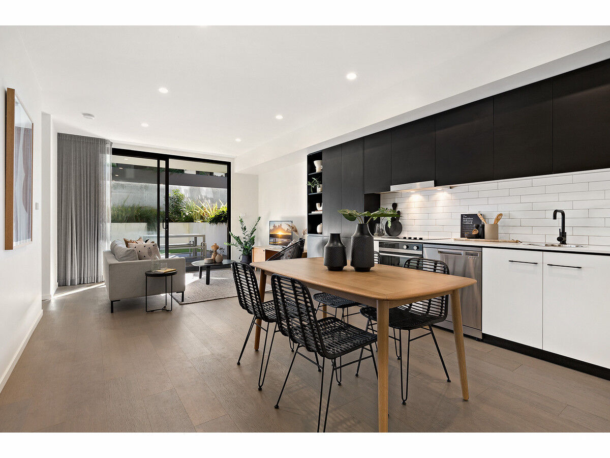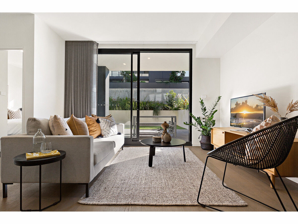 This fabulous apartment boasts a practical layout with a bright open-plan living area with air conditioning, a streamlined, stylish stone kitchen with electric appliances and a dishwasher, two carpeted bedrooms both with built-in robes, and two sleek designer bathrooms.