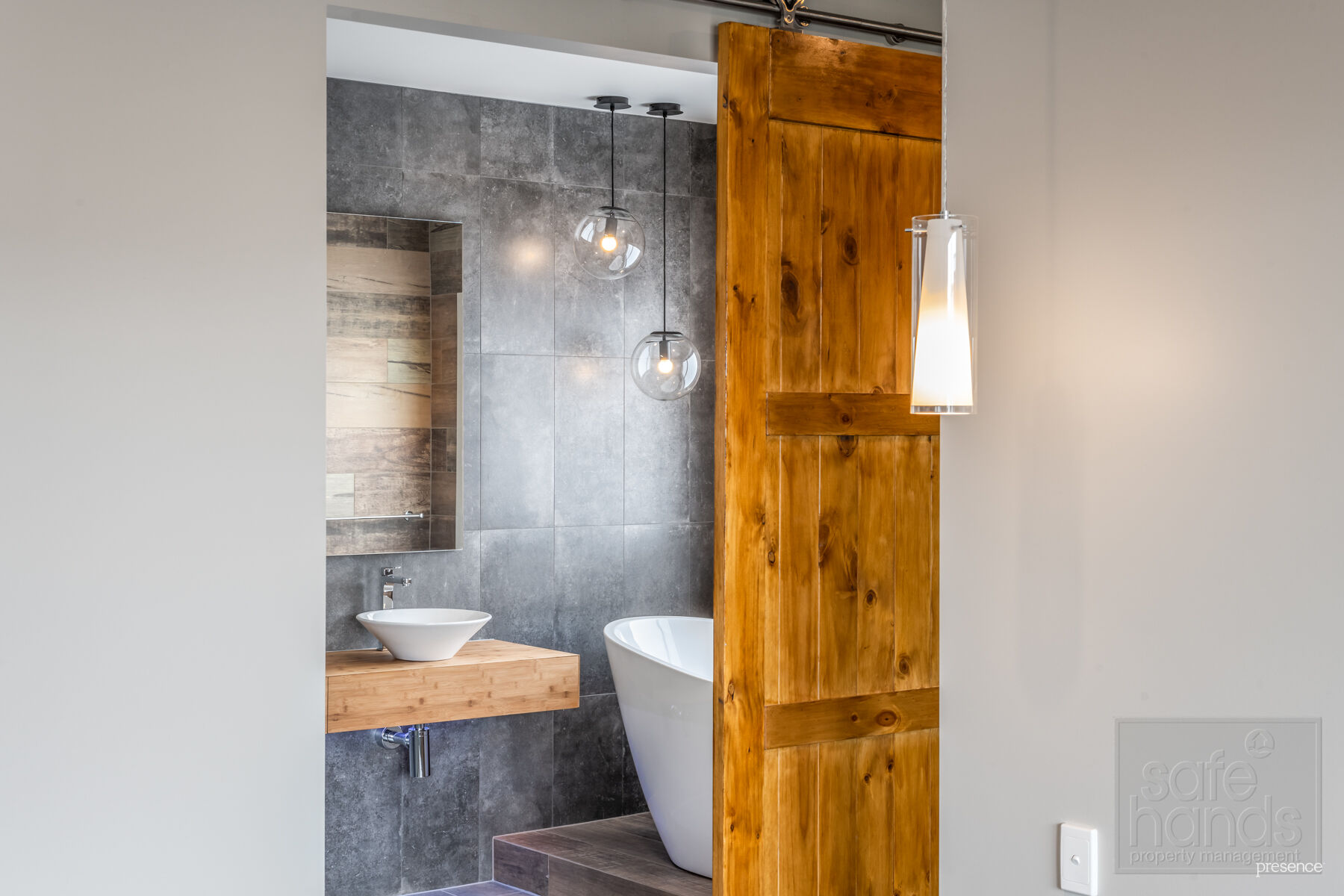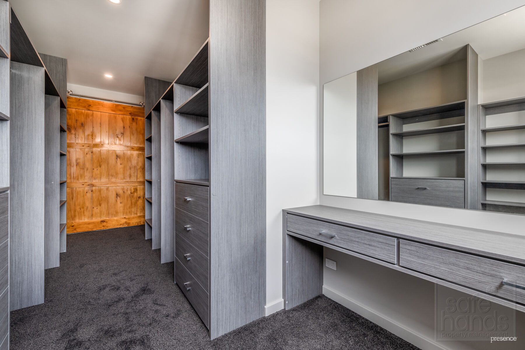 – Master suite with powder room, walk-in robe plus built-in dressing table and luxuriously appointed ensuite complete with barn door