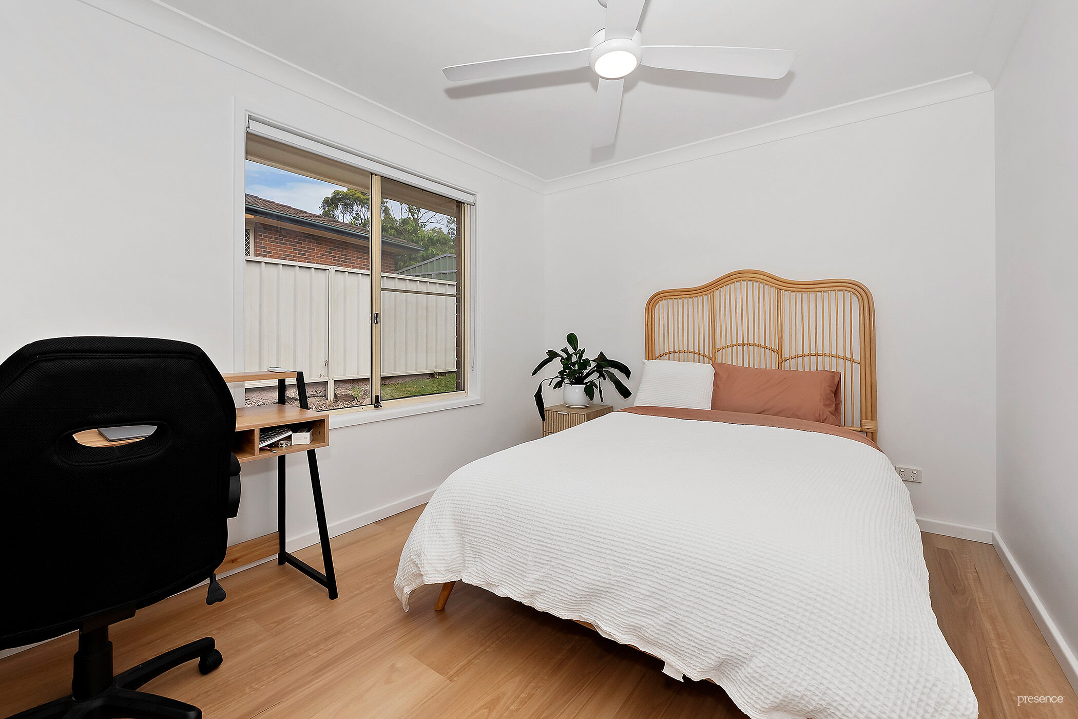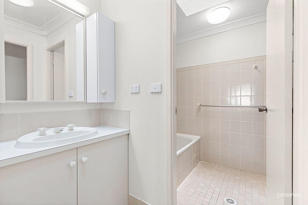 Both bedrooms include built-in robes and ceiling fans, while the three-way bathroom provides functionality for shared living. A separate, good-sized laundry adds further practicality. Outdoors, you’ll find a covered entertaining area overlooking the fully enclosed backyard, along with a single lock-up garage offering side access to the rear yard.