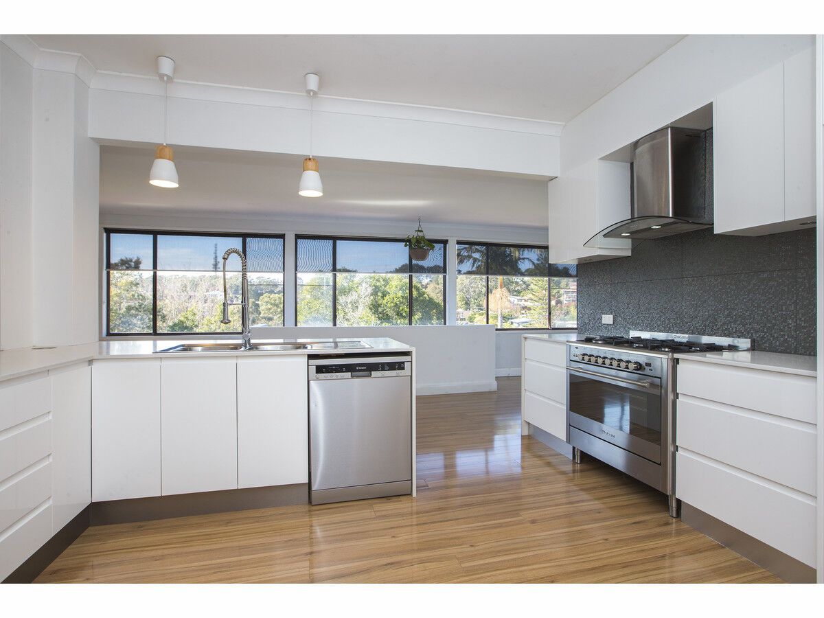 There is loads of natural light that is on offer along the rear of the home through windows that flow from both sides of the home. The fully renovated kitchen is located in the centre of the living areas making this an ideal hub of the home, the kitchen is complimented with stainless steel gas cooker, electric oven and dishwasher. The timber flooring gives the home a lovely sense of modern interior design and flows throughout the living areas.