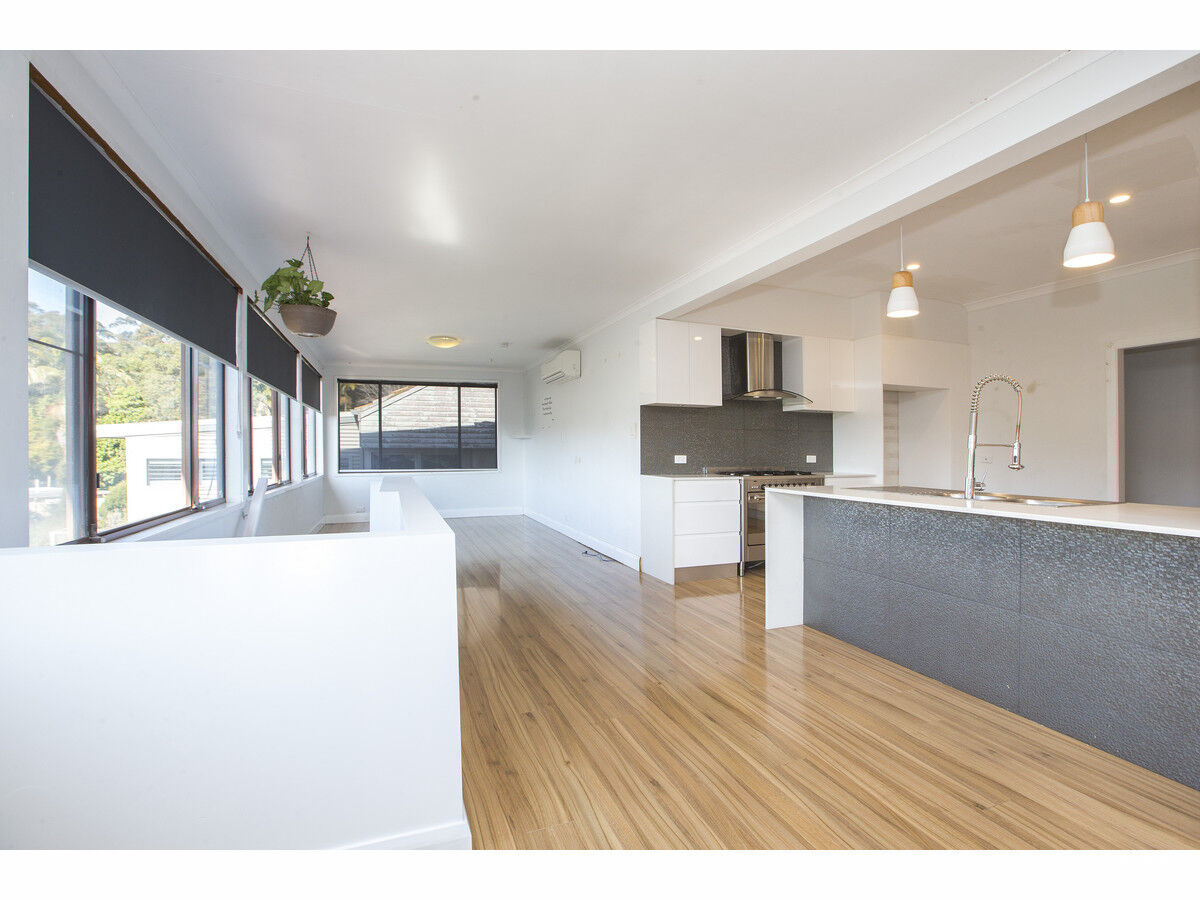 This lovely presented home offers all that a family needs for comfortable living. On the upper level the home offers three bedrooms which include built-in wardrobes and ceiling fans and one full bathroom. Two separate living areas are also on this level, one with built-in gas flame fire, the other living room offers views over the surrounding homes and fenced yard, a split cycle air conditioner also compliments the area.