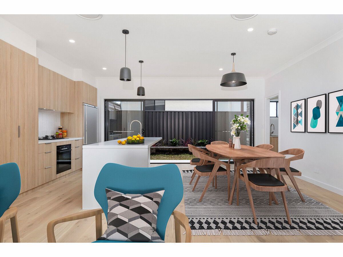 The property itself is accessed from the private rear laneway and pedestrian access to the front. Upon entry you are greeted by the crisp white palette and stunning timber flooring, contemporary accents are also shown throughout. To the left is a convenient lower floor-robed guest bedroom. Waking through is the expansive open plan living, dining, and kitchen area, all flowing out to the large sliding doors to the alfresco and courtyard area. Dedicated zones for the living and dining showcase the well-thought-out design. A large kitchen anchors the space and offers a great size central island, complete with quality appliances, benchtops, gas range, dishwasher, and pendant lighting. Completing the ground floor is the internal laundry and showered third bathroom plus a single garage with internal access.