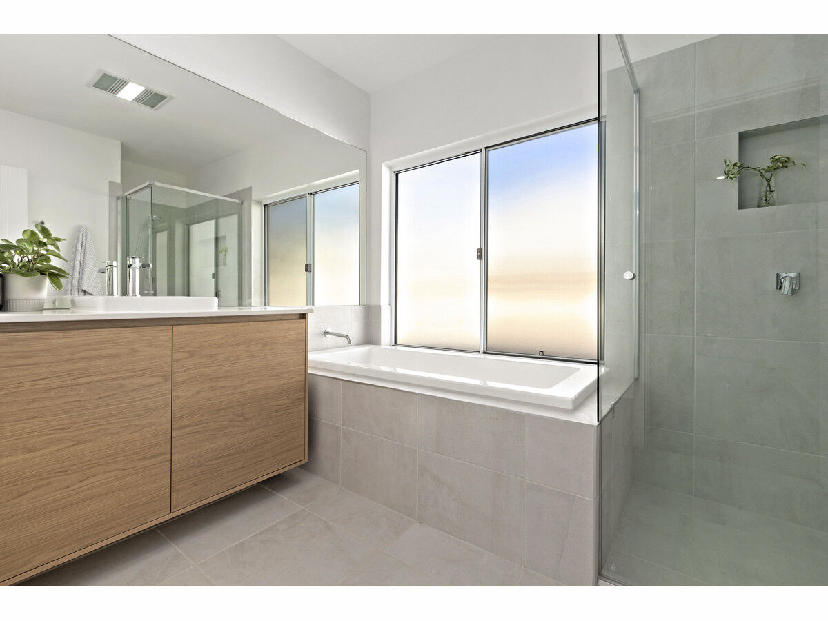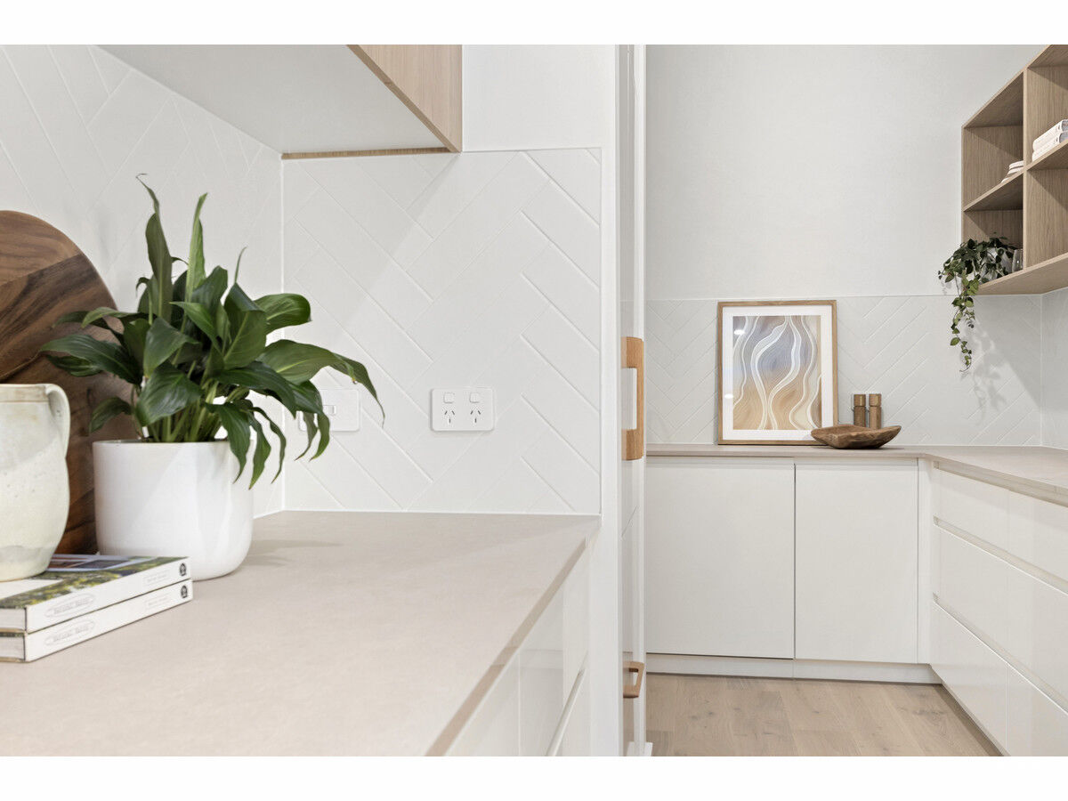 The striking kitchen boasts a huge butler’s pantry, two ovens, an integrated fridge/freezer, two integrated dishwashers, and a vast island bench. The master bedroom features his-and-her walk-through robes and a full-sized ensuite. All other bedrooms come with built-ins and plush window furnishings. The master bathroom offers a full-sized bathtub and a separate W/C, complemented by another full-sized bathroom downstairs.