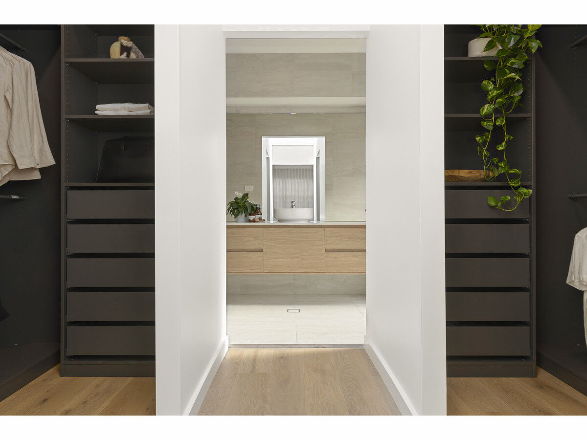 – Fisher & Paykel 900mm gas cooktop, two ovens, microwave, integrated fridge/freezer, integrated dishwasher and integrated dual dish drawer