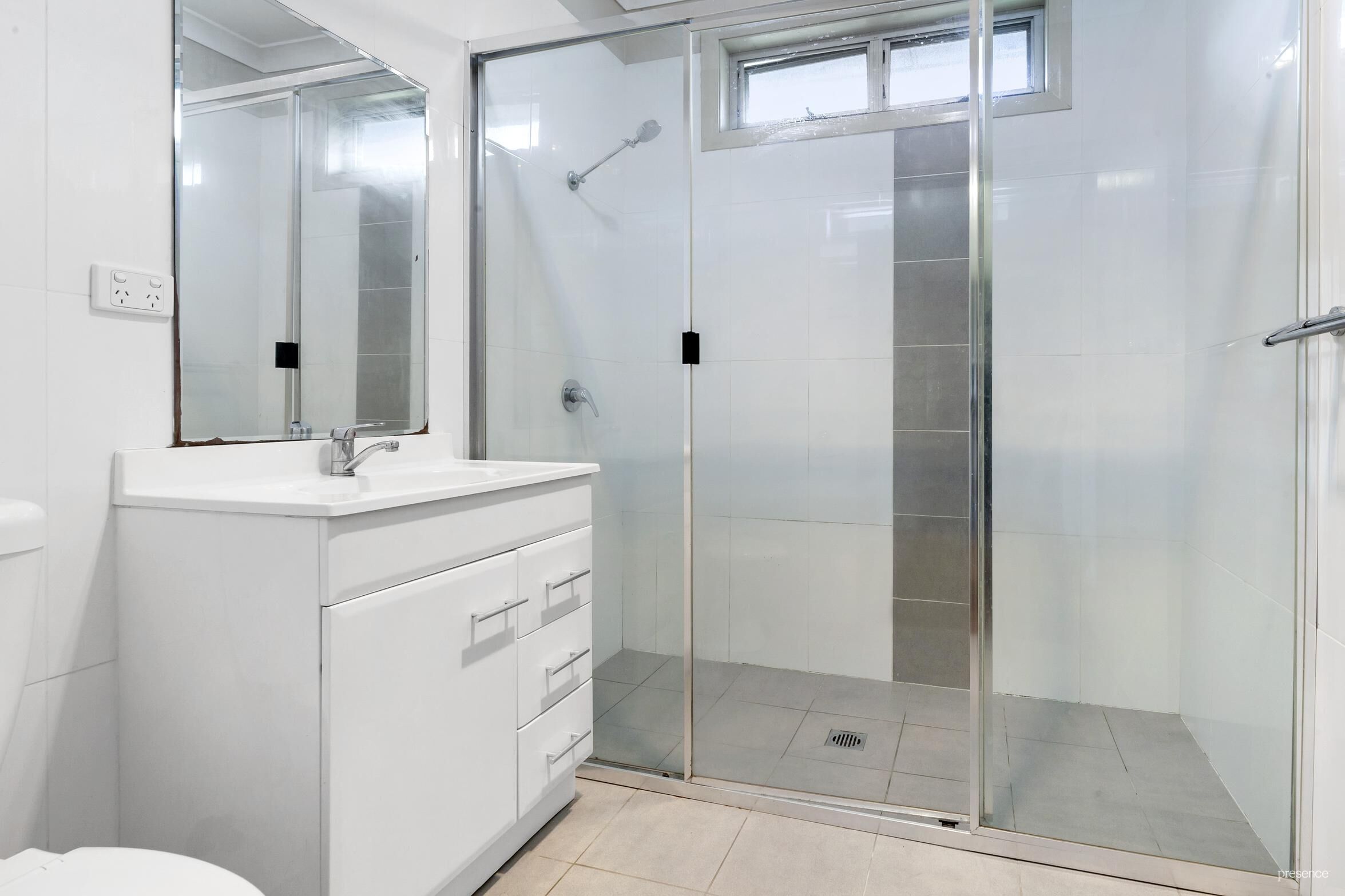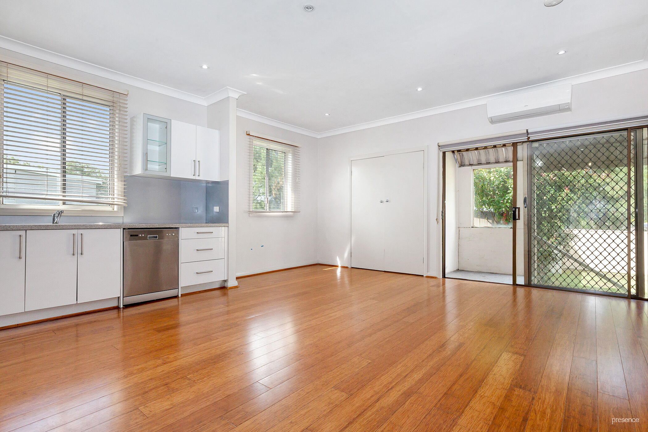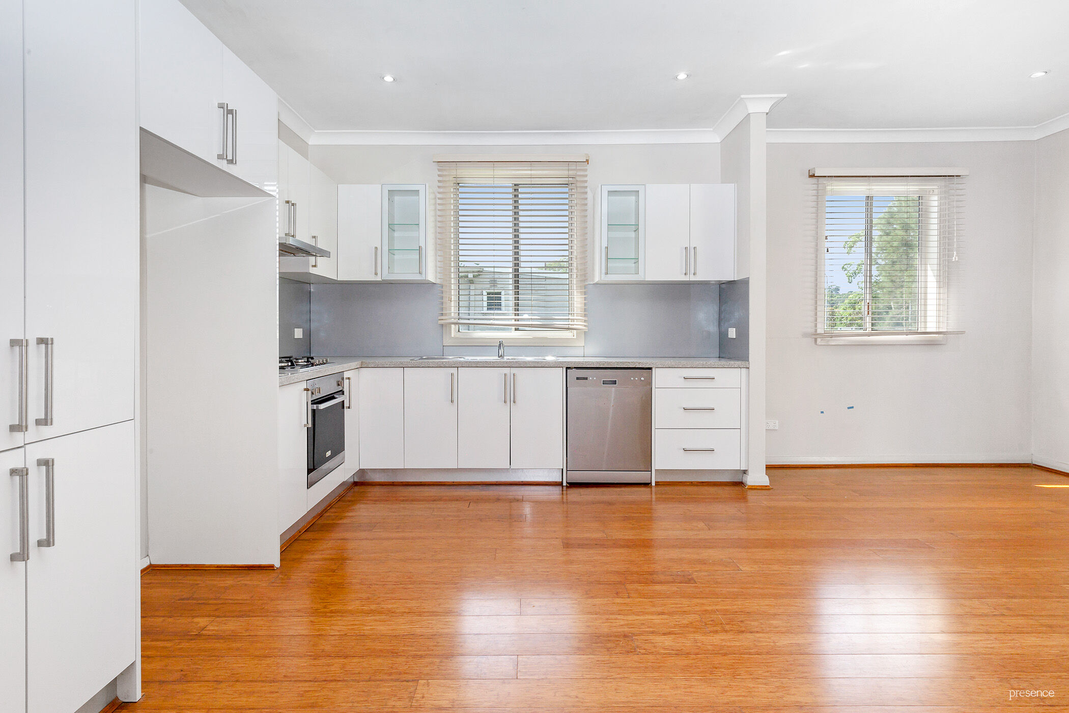 The modern kitchen exudes sophistication, featuring stainless steel gas appliances, a dishwasher, and ample cupboard and bench space. The three generously sized bedrooms are carpeted for comfort and share the convenience of a renovated bathroom with a spacious shower and modern neutral tones.
