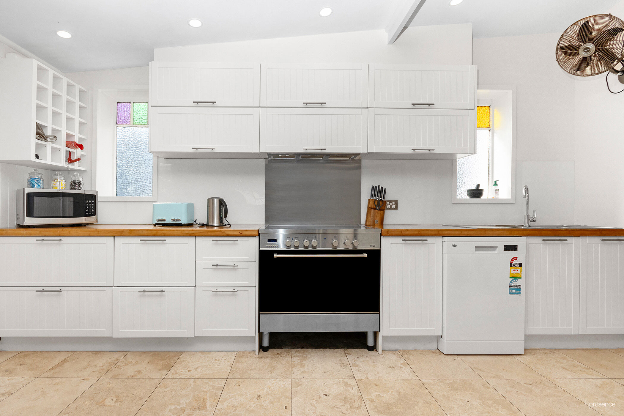 – Kitchen with dishwasher, electric cooking and timber benchtops