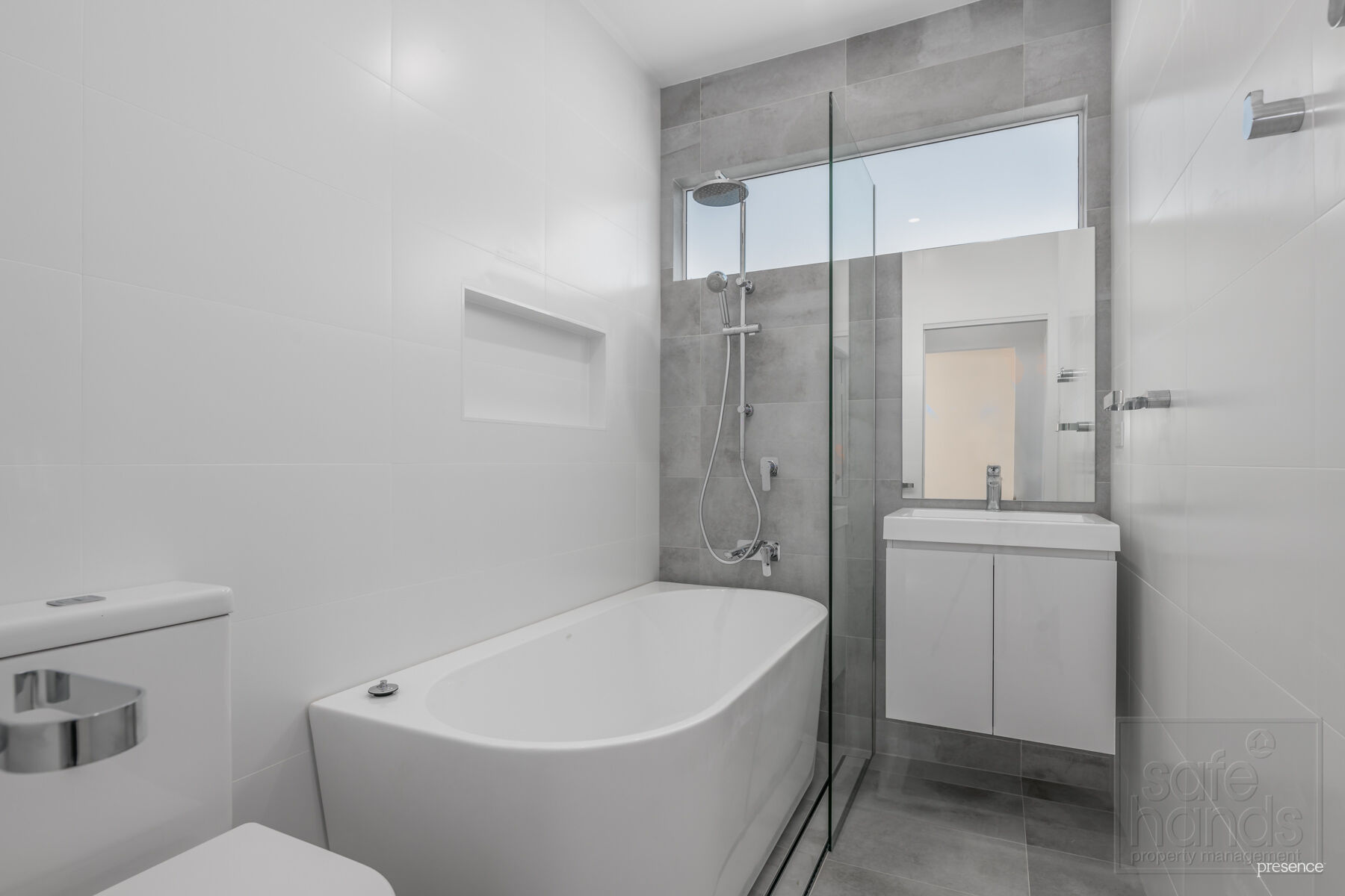 – Stunning bathroom with bespoke shower over bath, great vanity, feature tiling and w/c